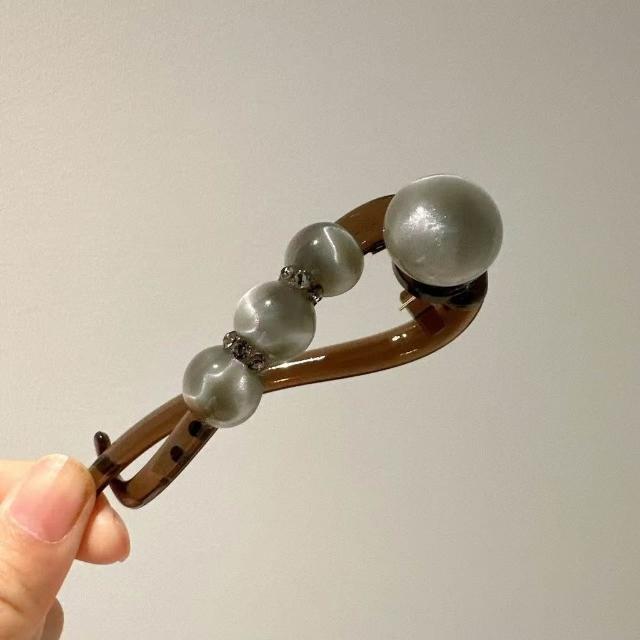 珠珠水鑽髮夾女簡約隨手盤發一字扭扭夾2025抓夾高級感夏天