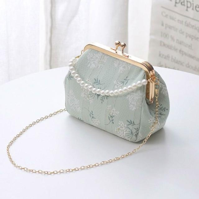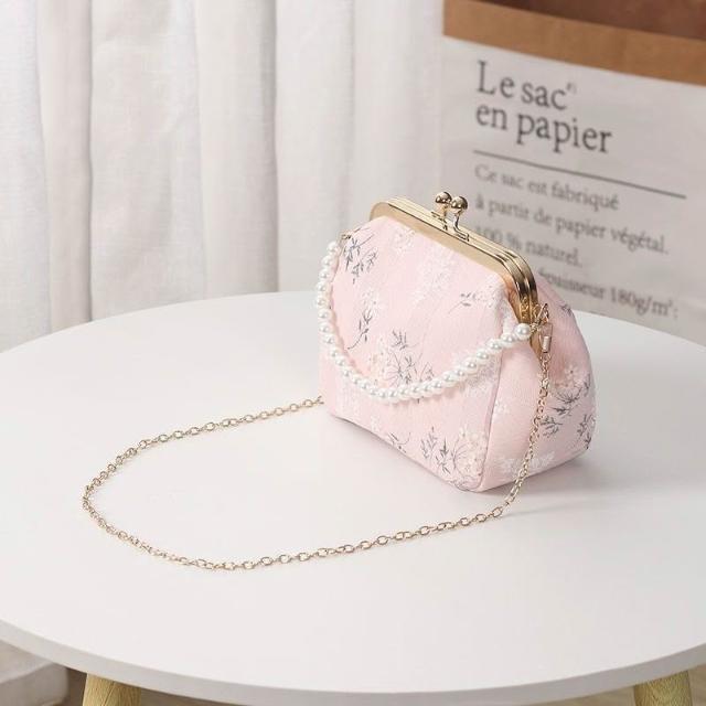 復古中國風斜挎口金包搭配旗袍穿的包包新中式仙女漢服珍珠手提包
