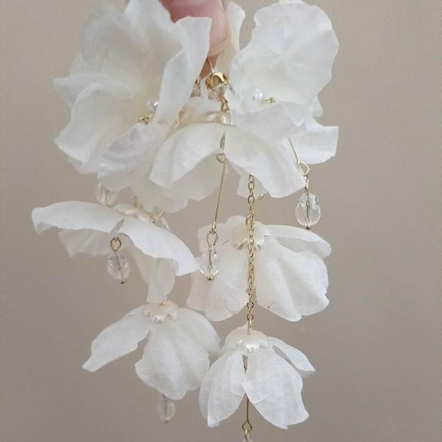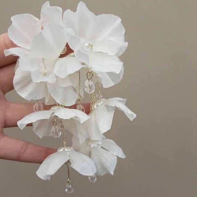 joseph流行-超仙氣質度假白色花瓣法式耳釘珍珠流蘇花朵耳環小衆耳飾新款
