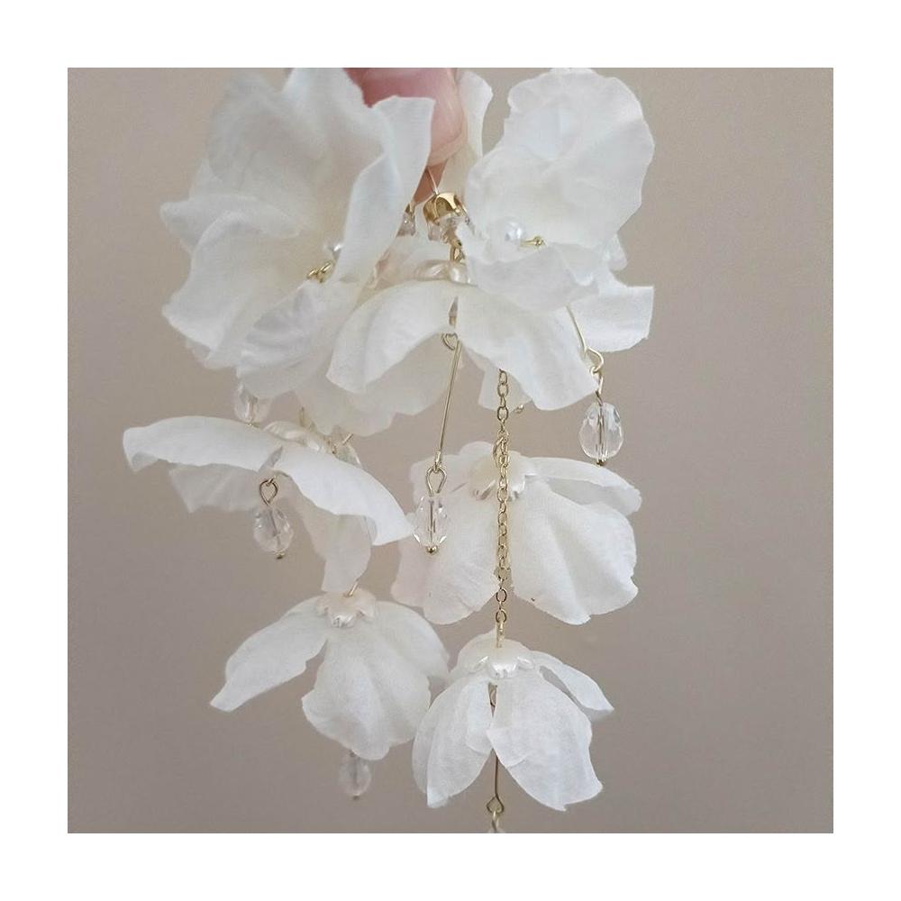 joseph流行-超仙氣質度假白色花瓣法式耳釘珍珠流蘇花朵耳環小衆耳飾新款