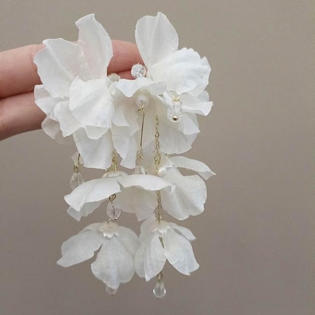 joseph流行-超仙氣質度假白色花瓣法式耳釘珍珠流蘇花朵耳環小衆耳飾新款