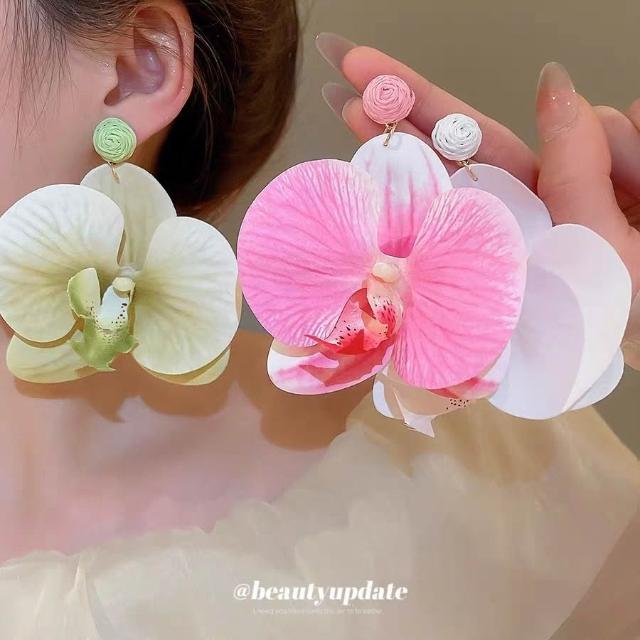 joseph流行度假風鋼針布藝花瓣花朵耳環個性設計耳釘女甜美超仙