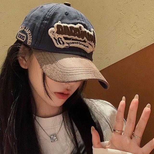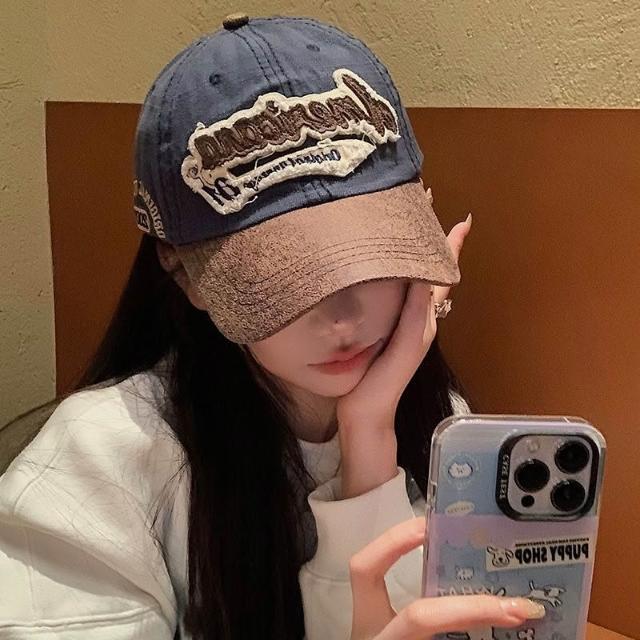joseph流行美式復古拼接牛仔棒球帽女韓版百搭大頭圍顯臉小深頂鴨舌帽子街頭