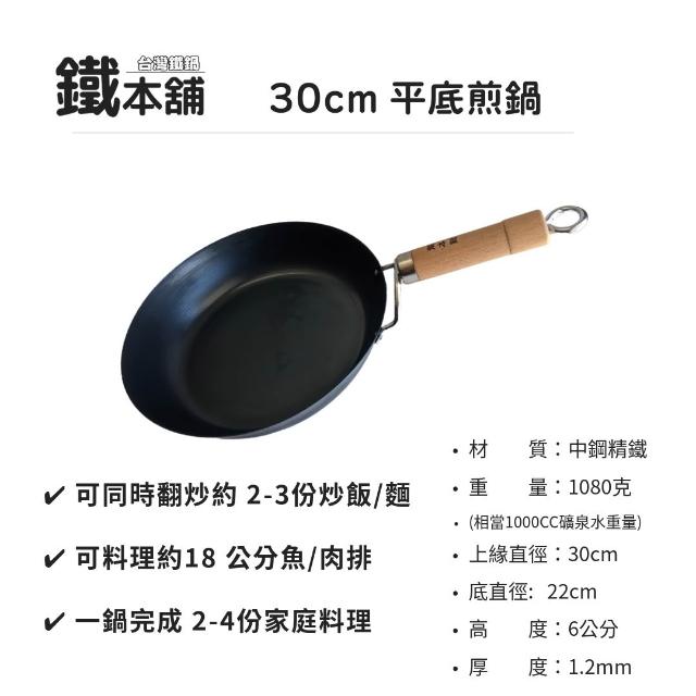 鐵本舖台灣鐵鍋 30cm 平底煎鍋|台灣在地生產|已開鍋底
