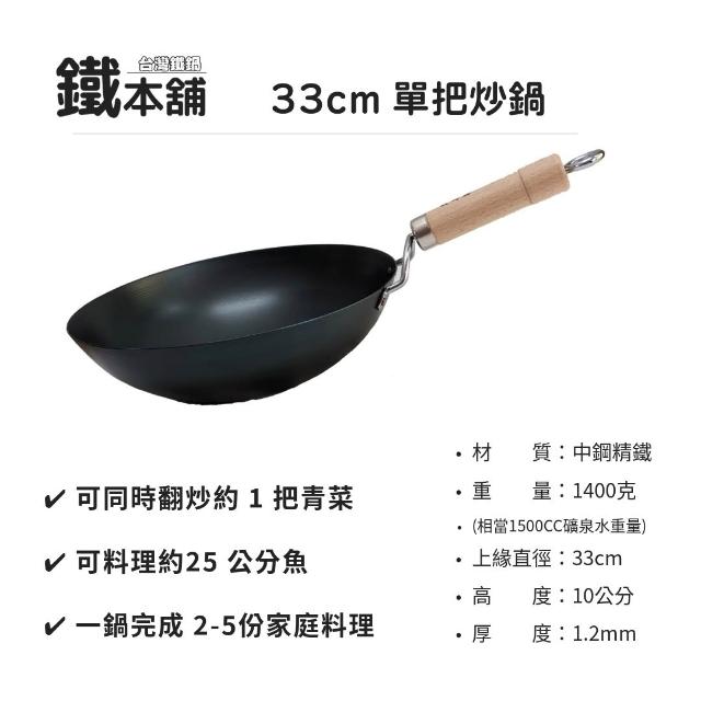 鐵本舖台灣鐵鍋 33cm 單把炒鍋|台灣在地生產|已開鍋