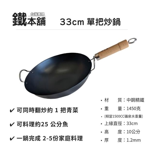 鐵本舖台灣鐵鍋 33cm 單把附耳炒鍋|台灣在地生產|已開鍋