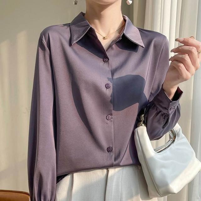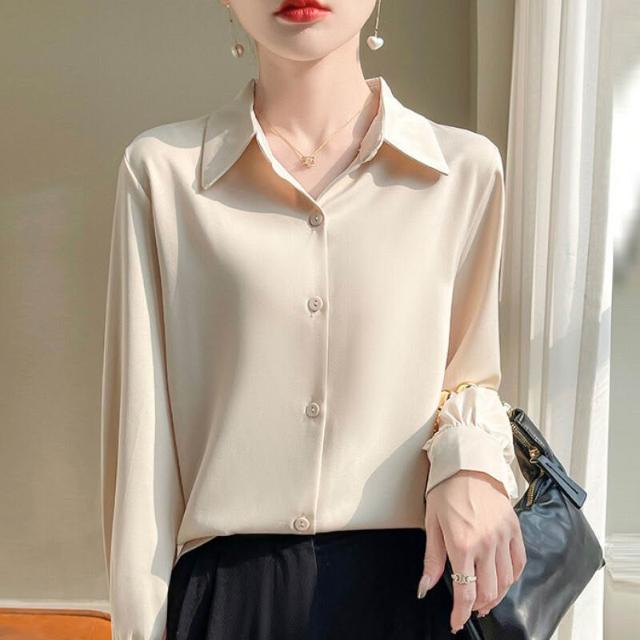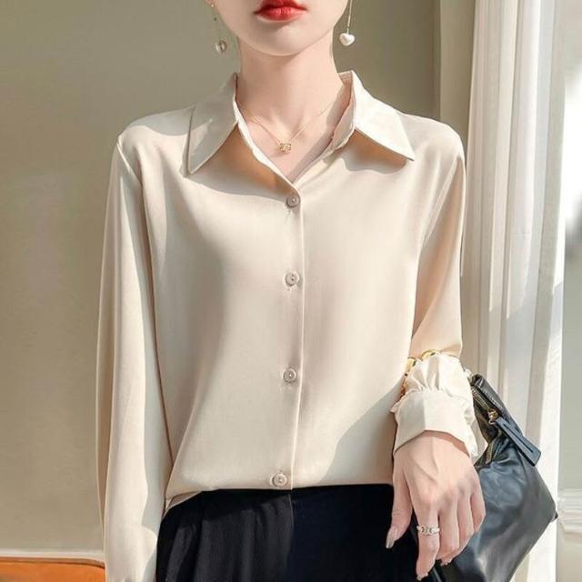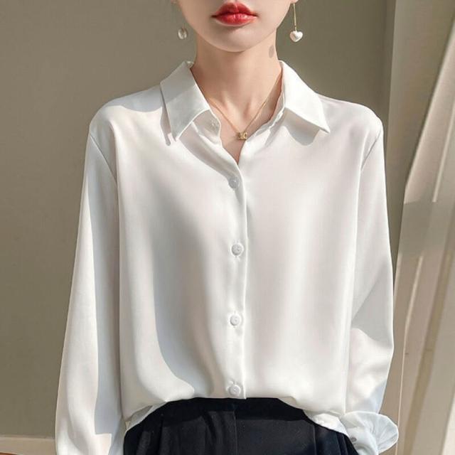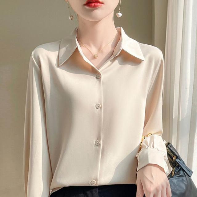 桑蠶絲 襯衣 襯衫 女士長袖 真絲上衣 真絲襯衫 寬松上衣 大碼上衣 可外穿 職業裝