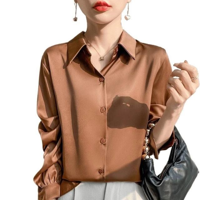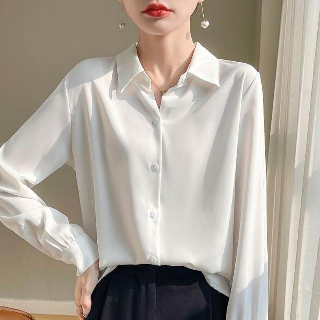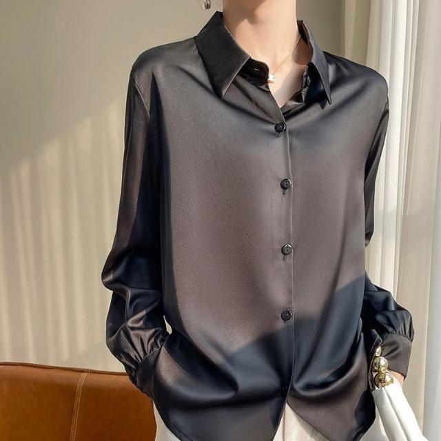桑蠶絲 襯衣 襯衫 女士長袖 真絲上衣 真絲襯衫 寬松上衣 大碼上衣 可外穿 職業裝
