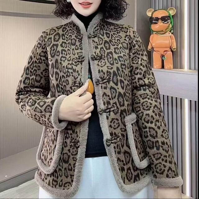 冬季新款媽媽中老年加絨加厚棉衣棉服保暖碎花中式盤扣外套棉襖女