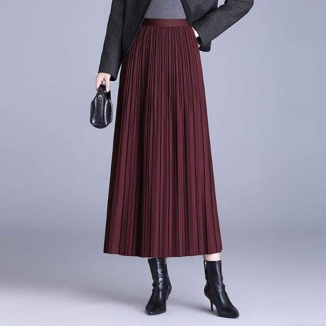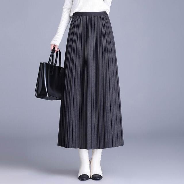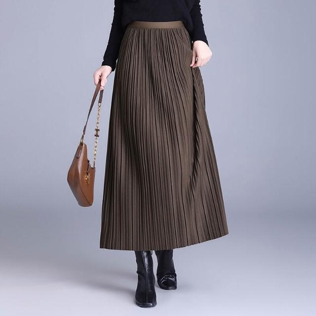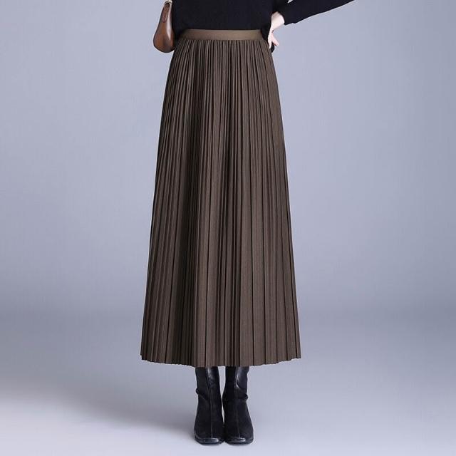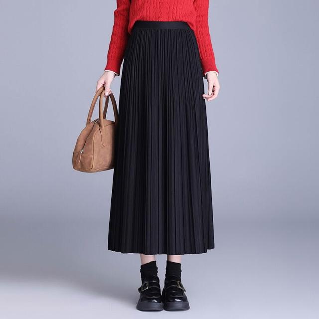 裙 裙子 2026新款垂墜感A字中年媽媽冬季裙百褶裙半身裙秋冬黑色長裙