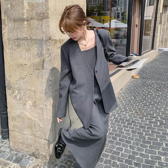 裙 裙子 灰色韓系高級感西裝吊帶裙套裝女春秋2025新款通勤氣質西服兩件套