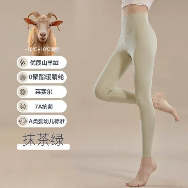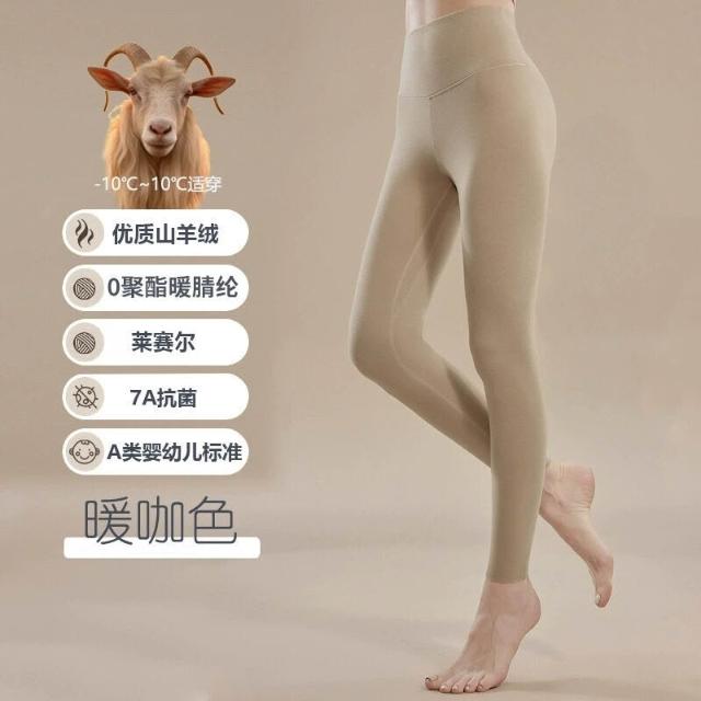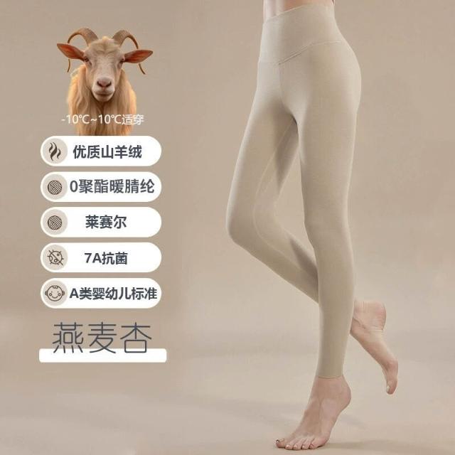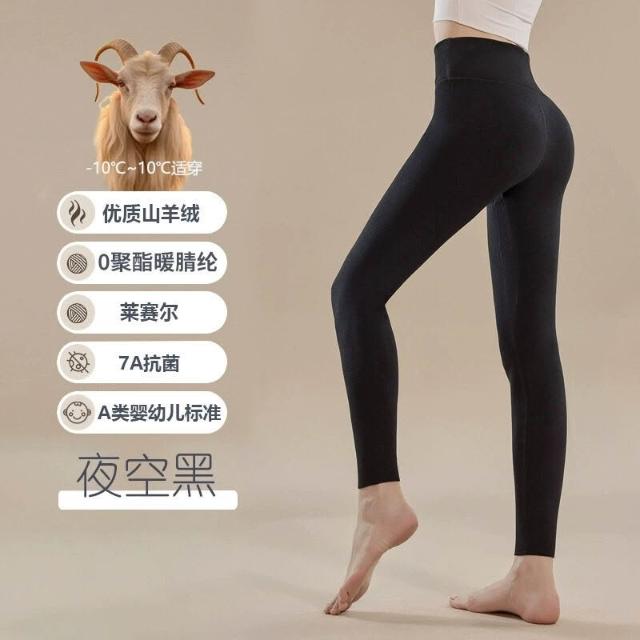 秋冬山羊絨女士高腰打底褲加絨長款護宮保暖褲7A抗菌修身收腹長褲