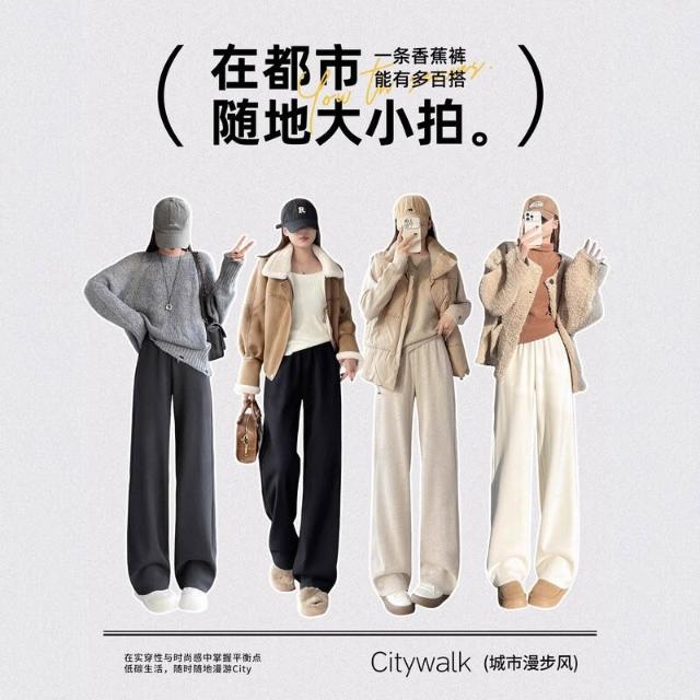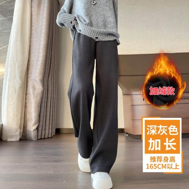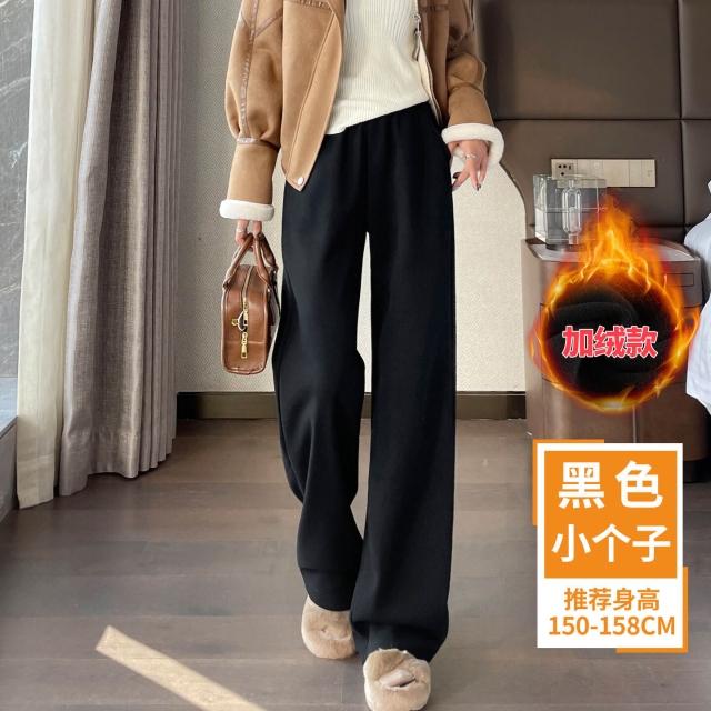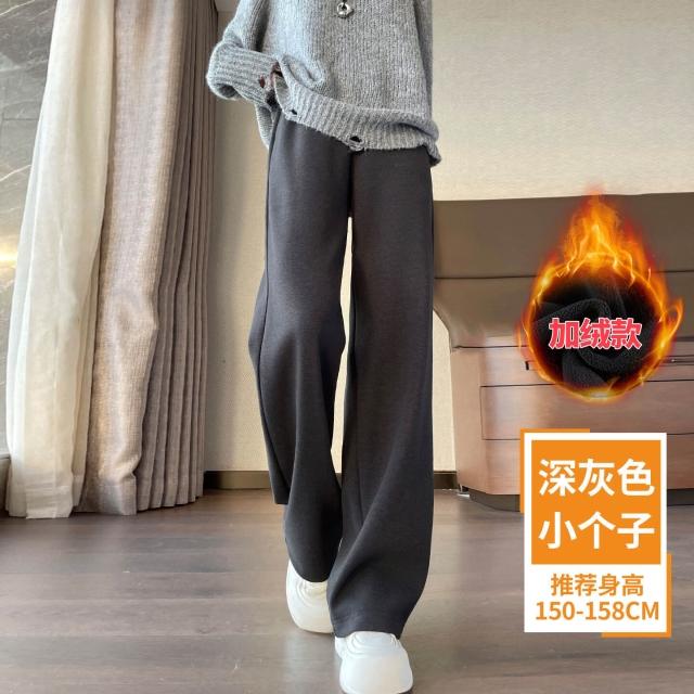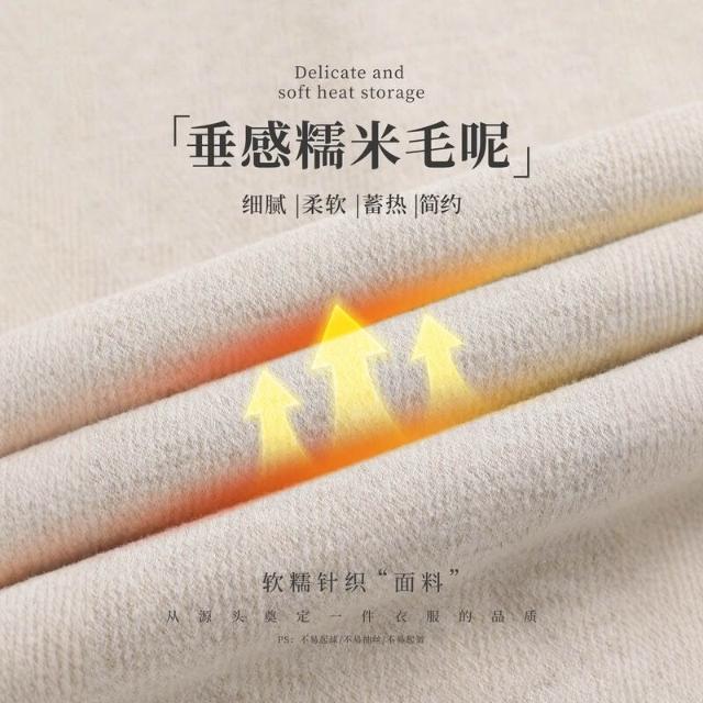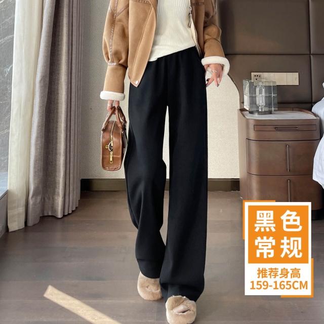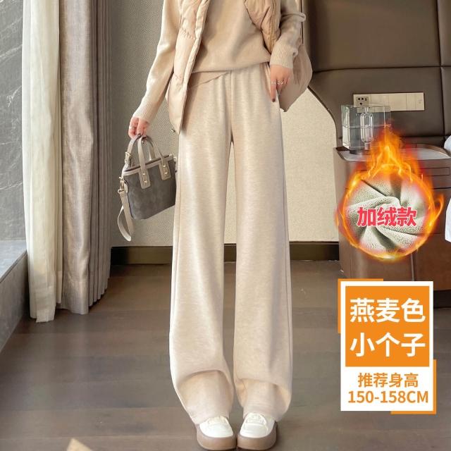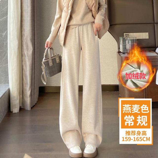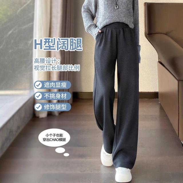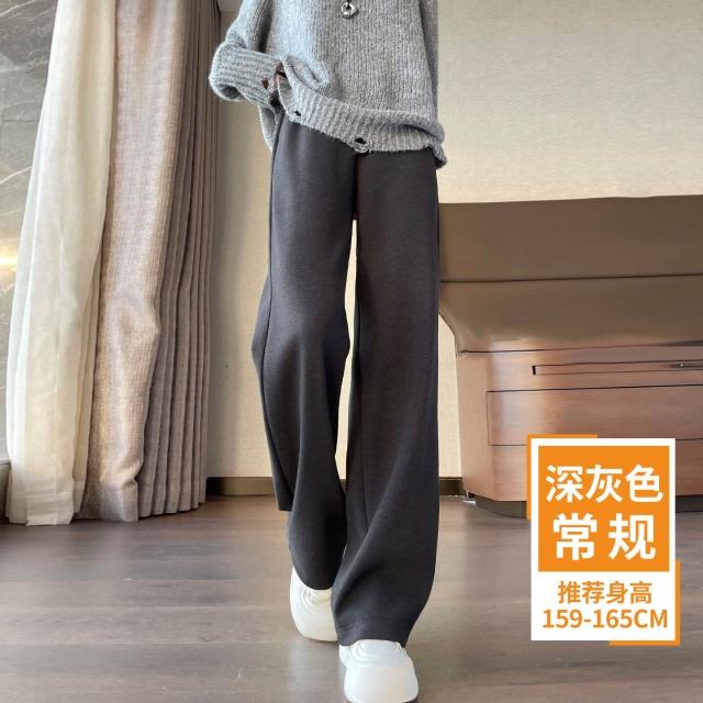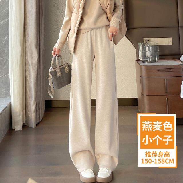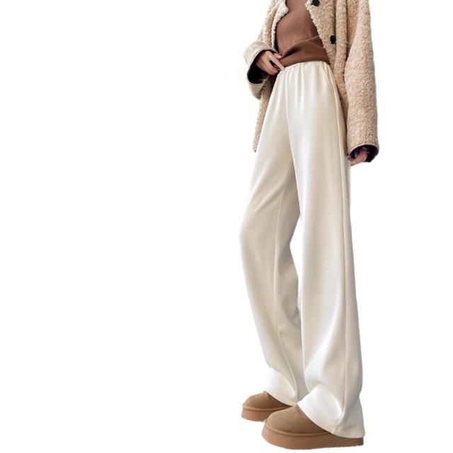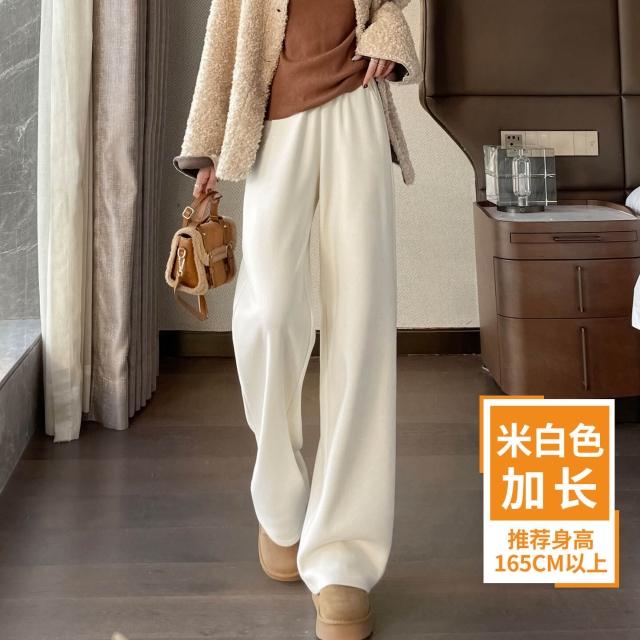 米白色醋酸羊毛闊腿褲女秋冬2025新款寬松窄版毛呢直筒加絨糯米褲