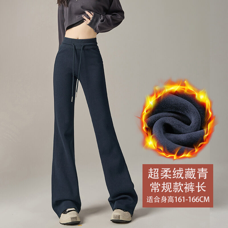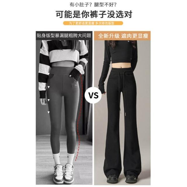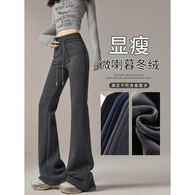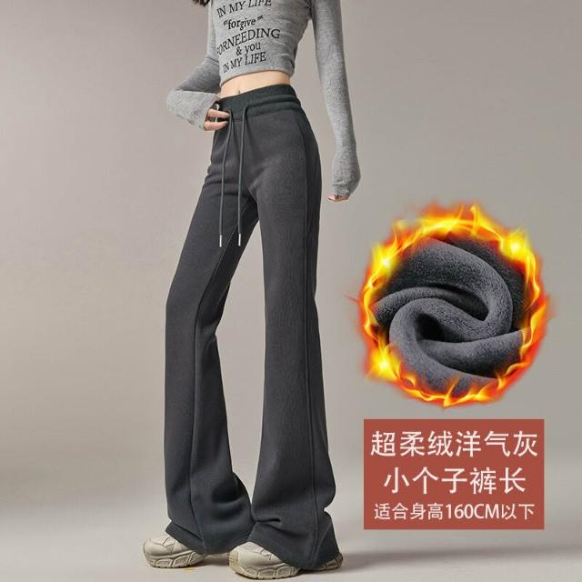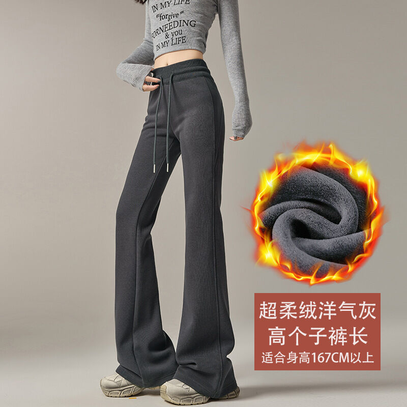 灰色微喇叭褲女秋冬季加絨小個子馬蹄褲垂感顯瘦闊腿休閑運動衛褲