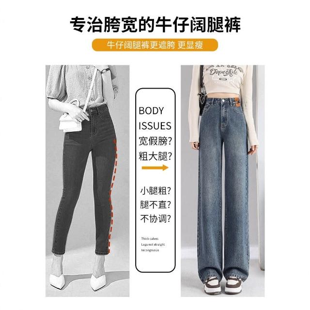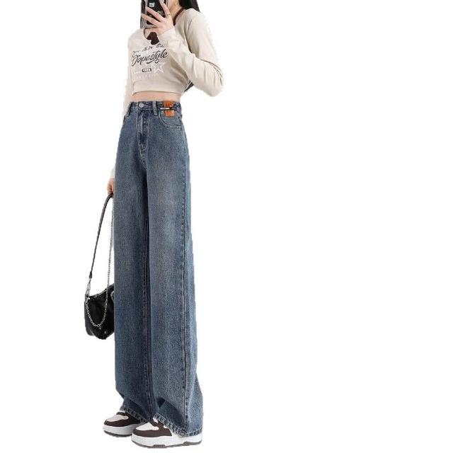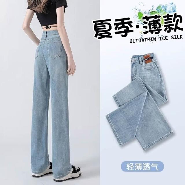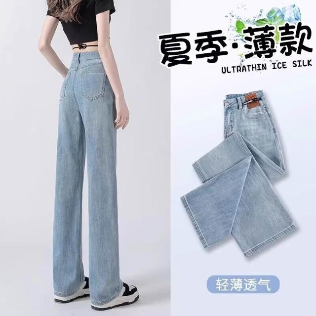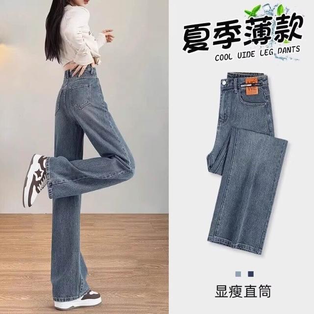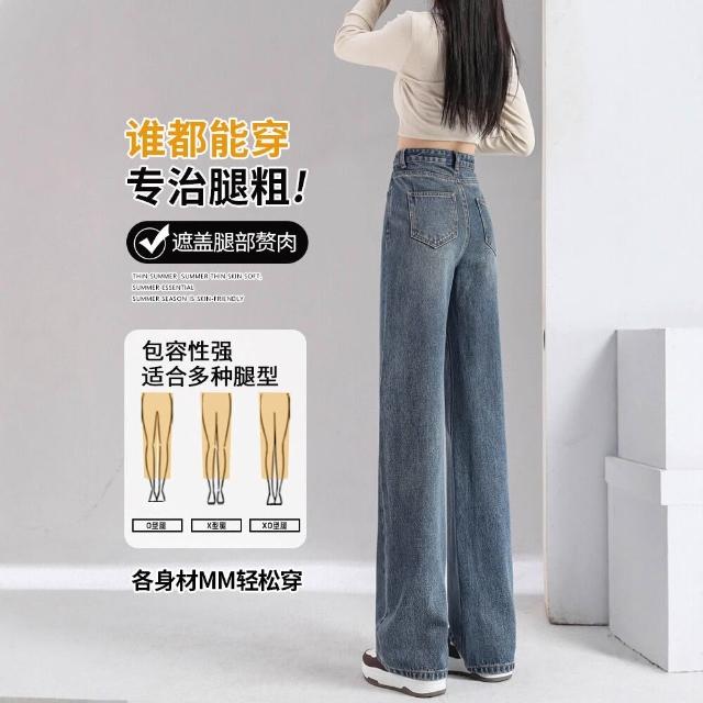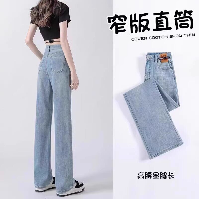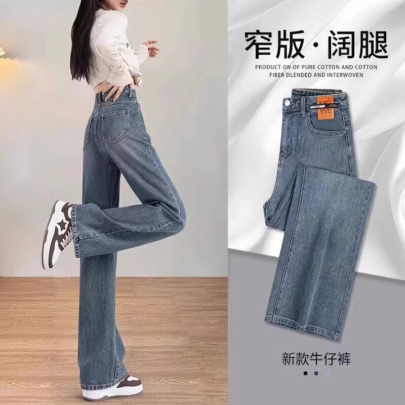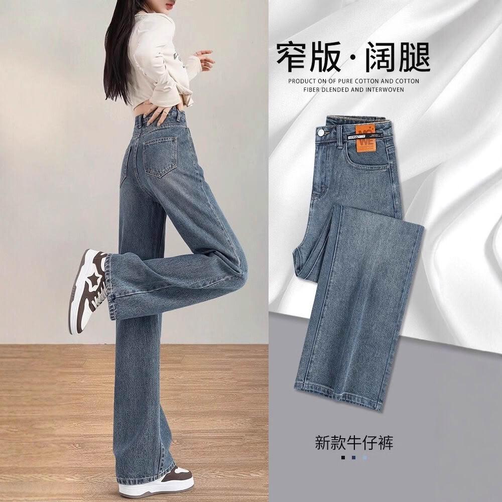 闊腿牛仔褲女2025新款薄款流行褲子寬松高腰顯瘦窄版直筒褲