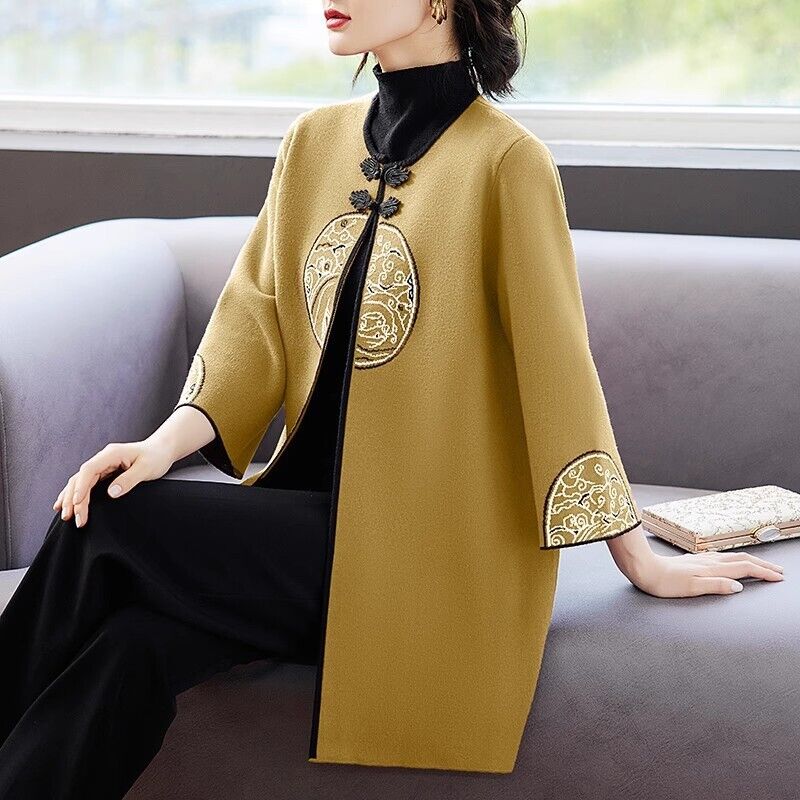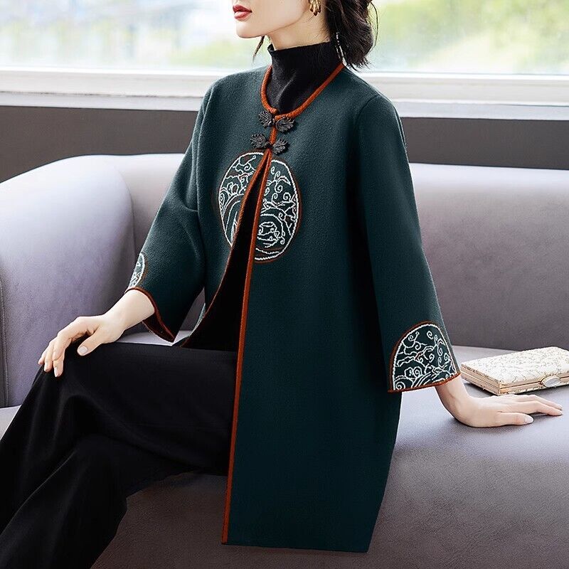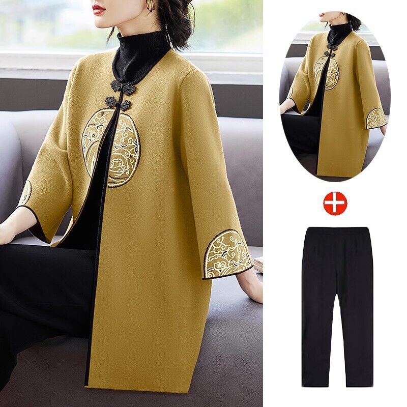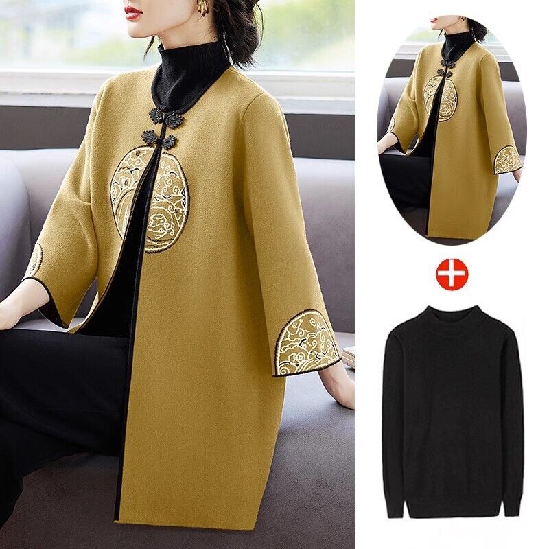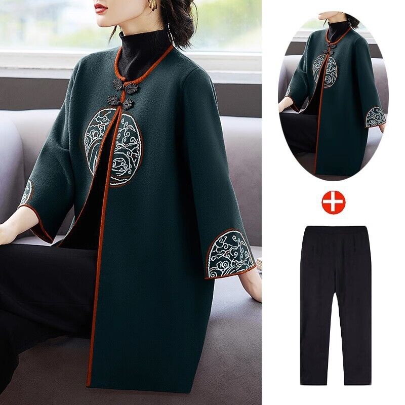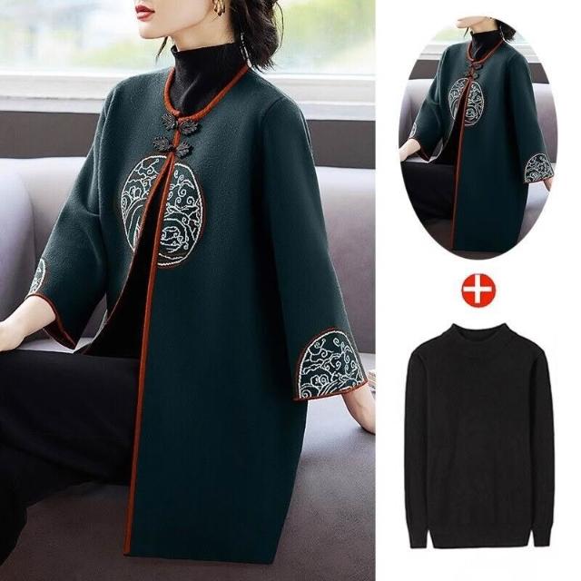 新品上架 媽媽秋裝國風毛衣外套50歲大衣紅色本命年中老年女秋冬婚宴禮服
