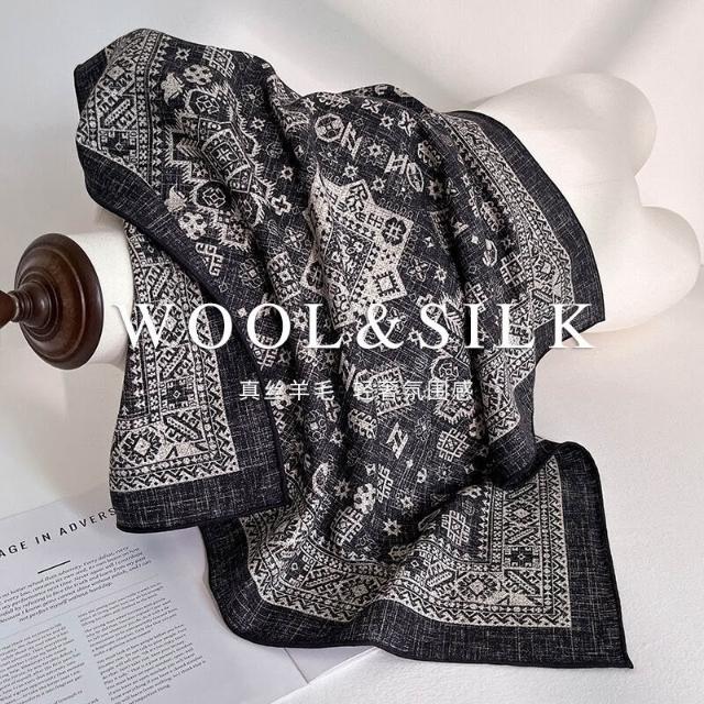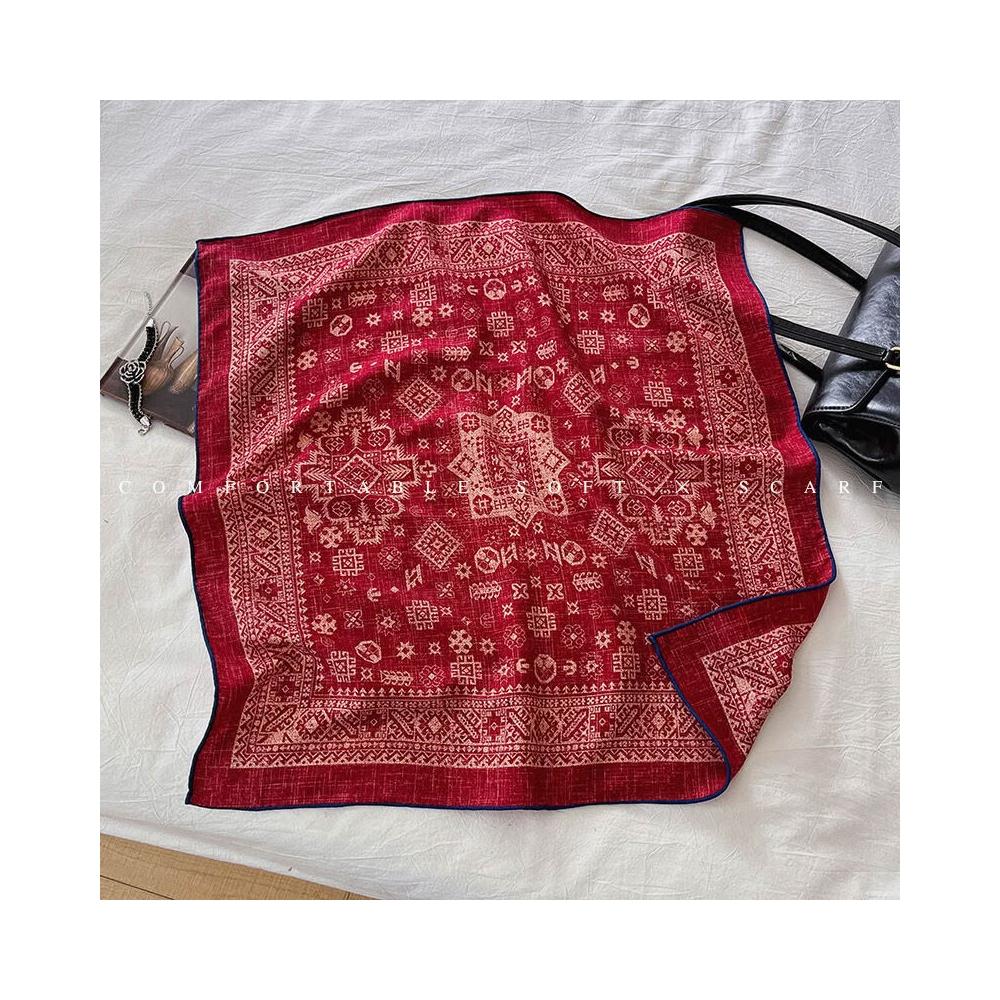 新品上架 經典紅色腰果花真絲羊毛圍巾女復古百搭雙面印花男女同款絲毛方巾