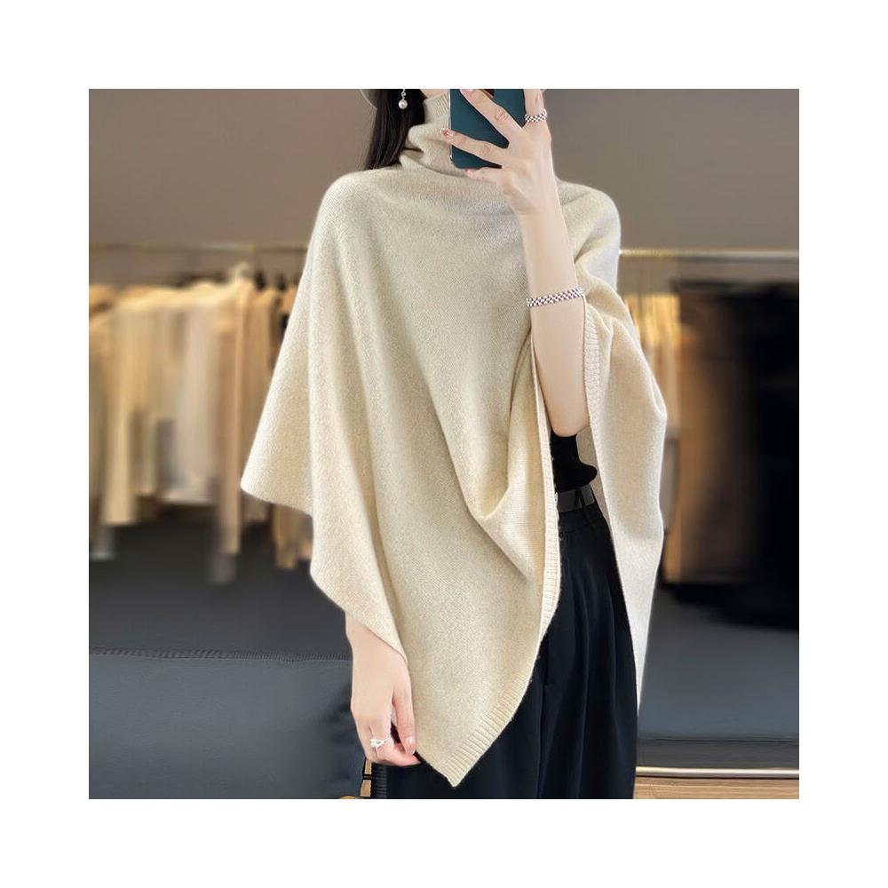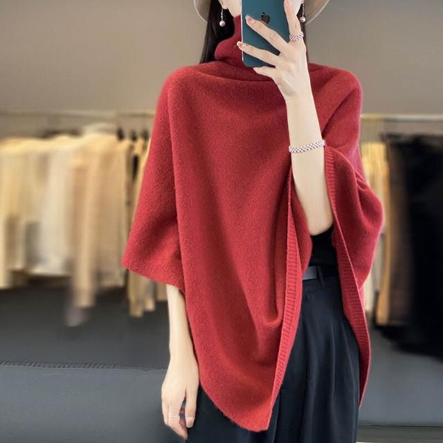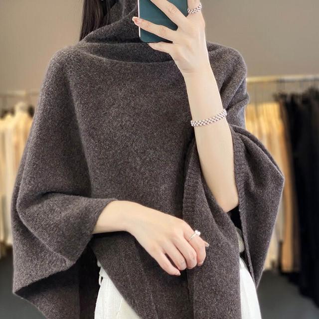 新品上架 高領羊毛披肩圍脖女秋冬新款套頭羊毛針織鬥篷時尚單品外搭