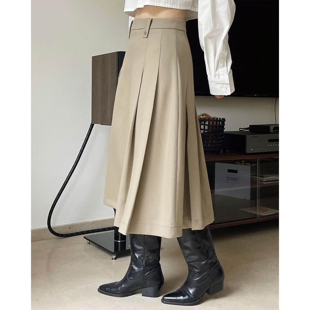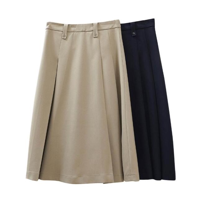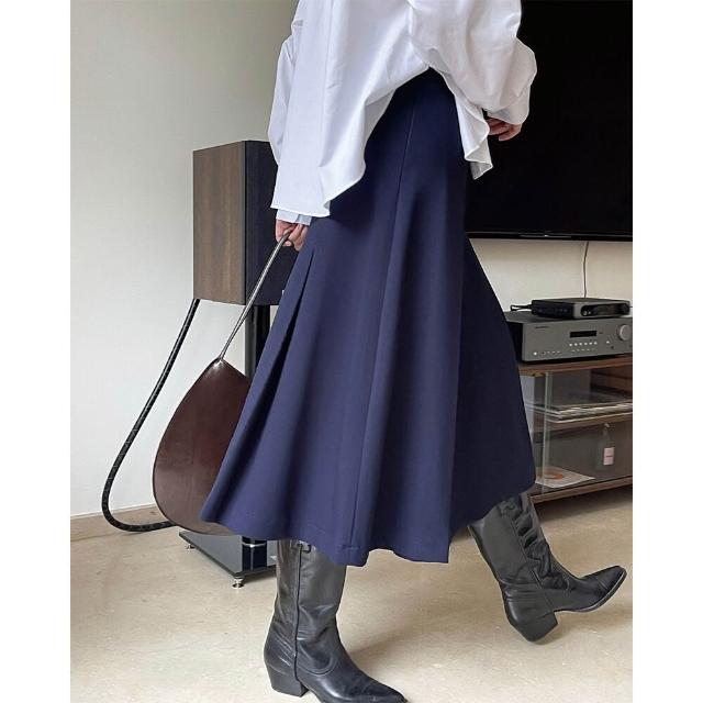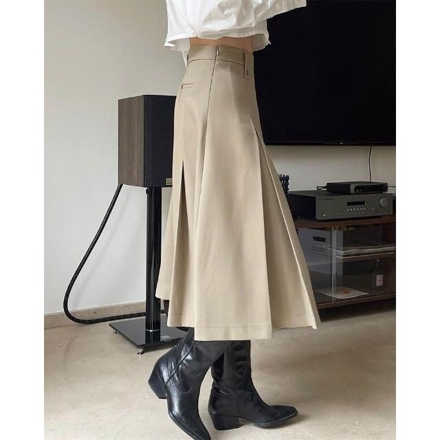 新品上架 新款韓版復古廓形高腰百褶半身裙寬松顯瘦褶裥中長A字傘裙女