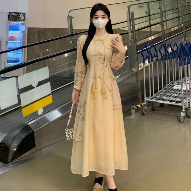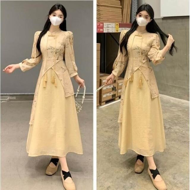 新品上架 胖妹妹中式國風禅意改良旗袍連衣裙春秋裝大碼女裝胖顯瘦長裙子