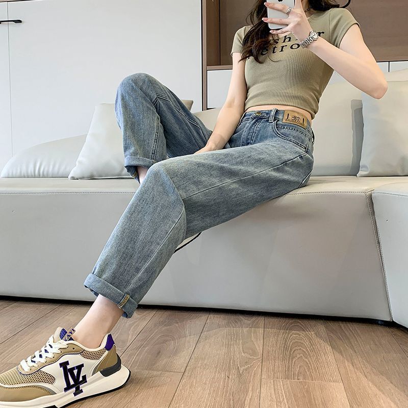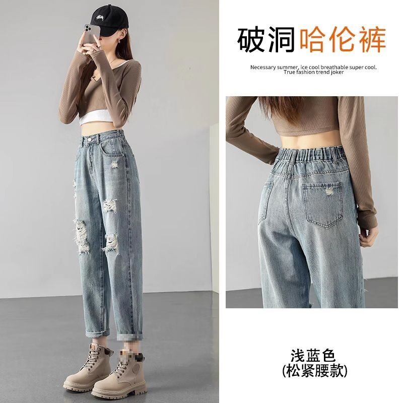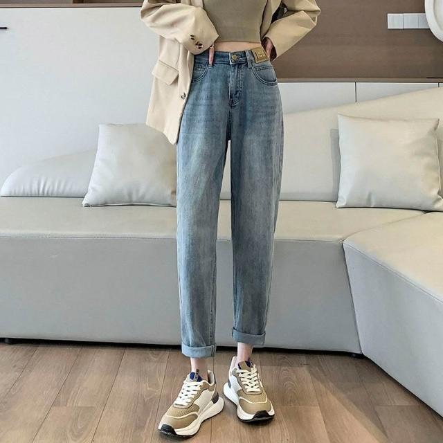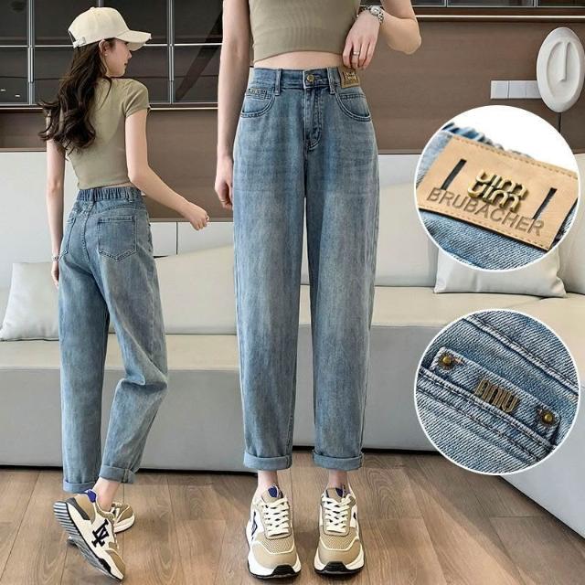 新品上架 哈倫牛仔褲子女年春秋新款高腰寬松顯瘦蘿蔔褲九分老爹褲子女
