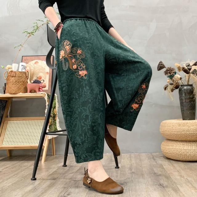 新品上架 春秋棉麻女褲 哈倫褲 民族風女褲 提花刺繡褲 小腳褲 休閒九分褲 新款女褲 棉麻休閒褲 刺繡哈倫褲