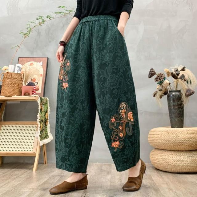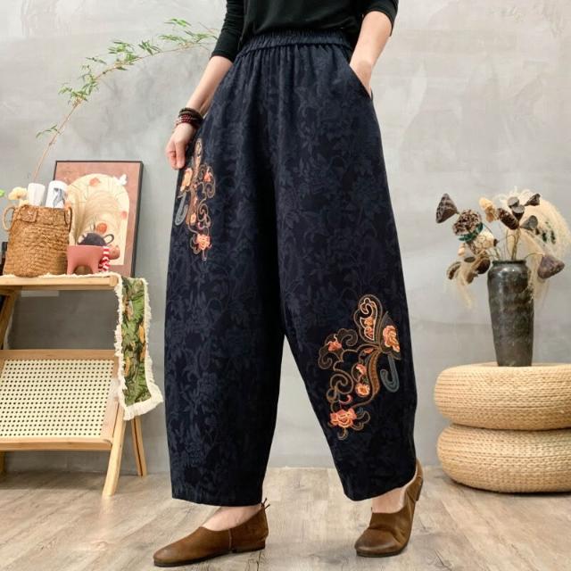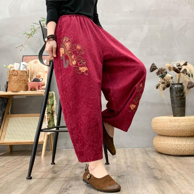 新品上架 春秋棉麻女褲 哈倫褲 民族風女褲 提花刺繡褲 小腳褲 休閒九分褲 新款女褲 棉麻休閒褲 刺繡哈倫褲