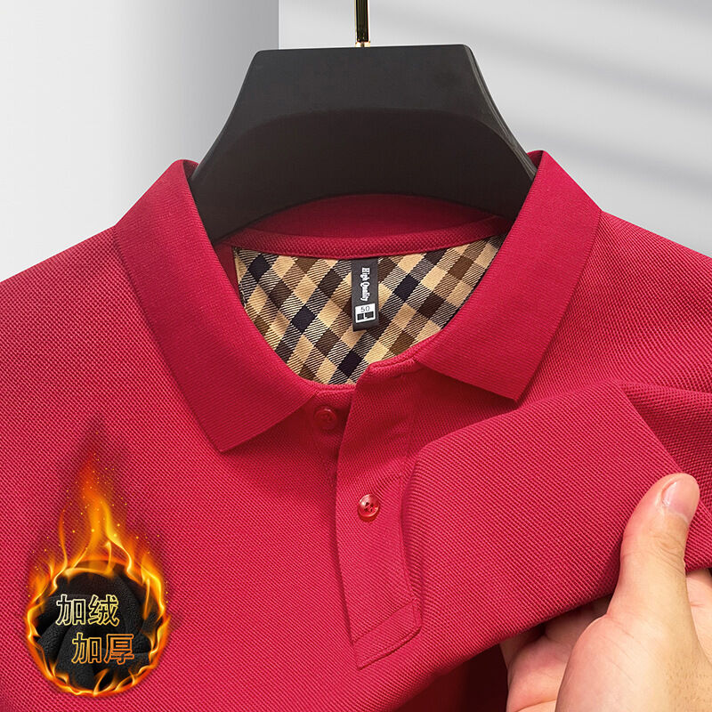 新品上架 2025秋100%純棉中老年長袖t恤爸爸裝新款男打底衫翻領上衣體恤衫