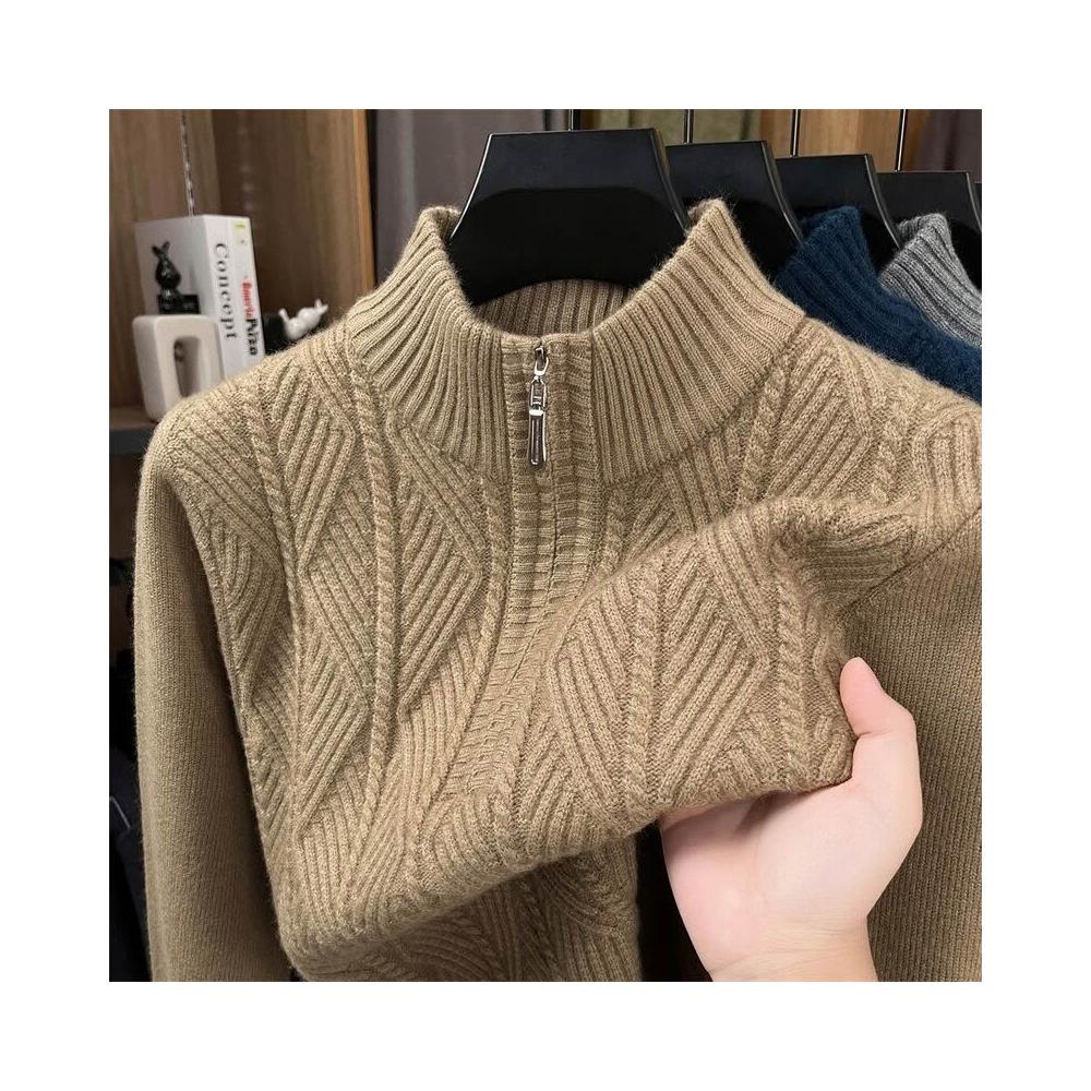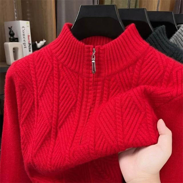 新品上架 男士羊毛衫高檔冬季中年休閑半高拉鏈領加厚保暖針織打底衫毛衣男