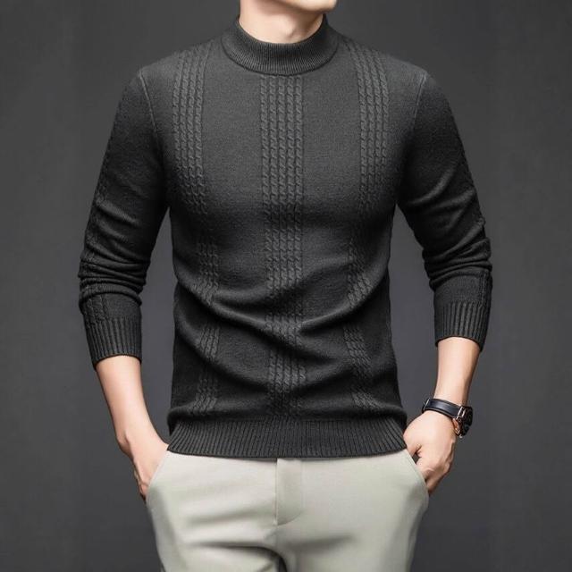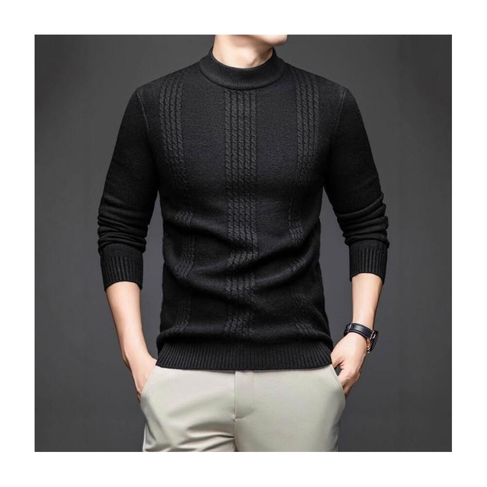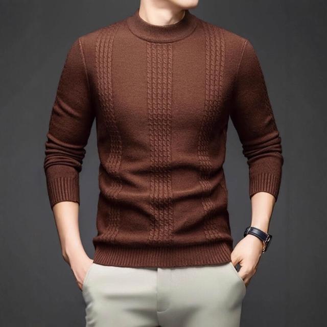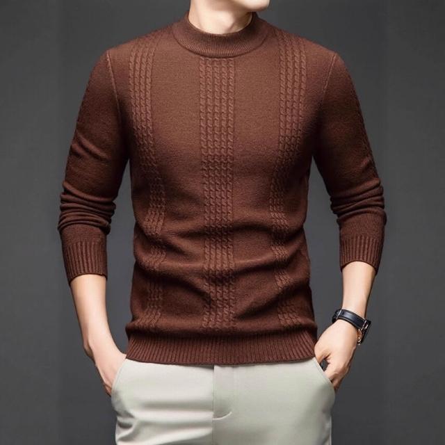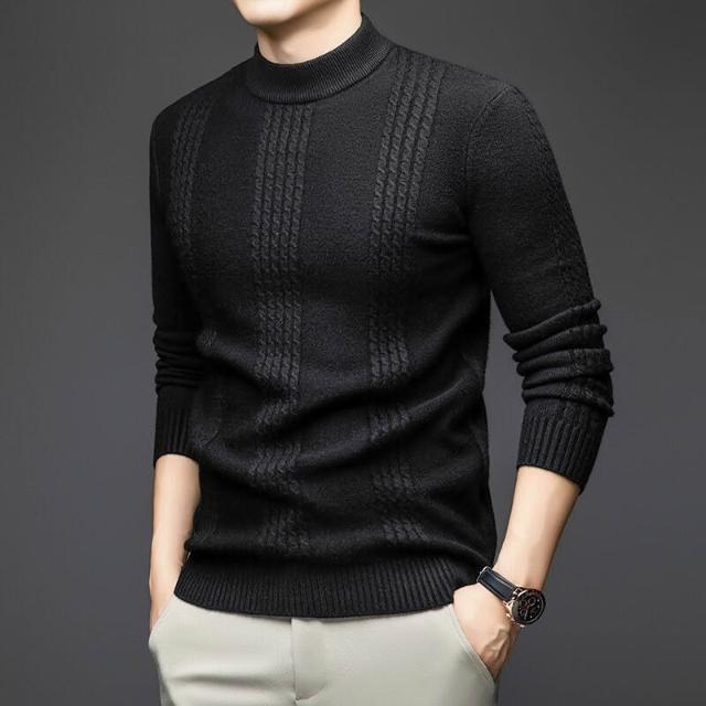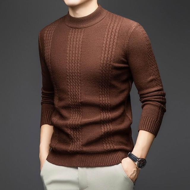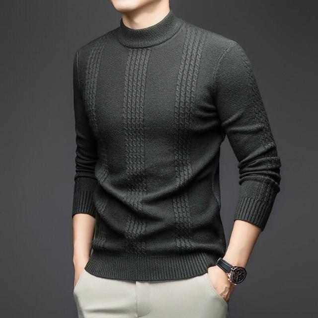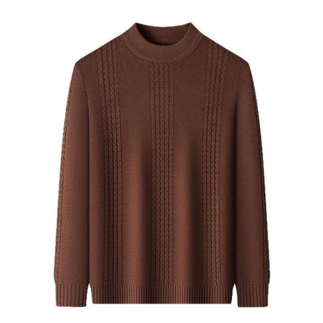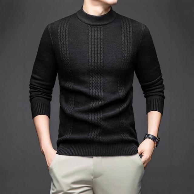 新品上架 男士秋冬新款半高領長袖純色針織衫中年柔軟親膚加厚打底衫毛衣