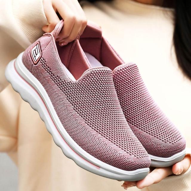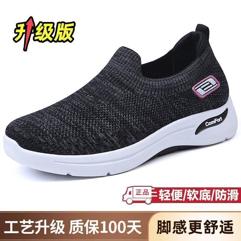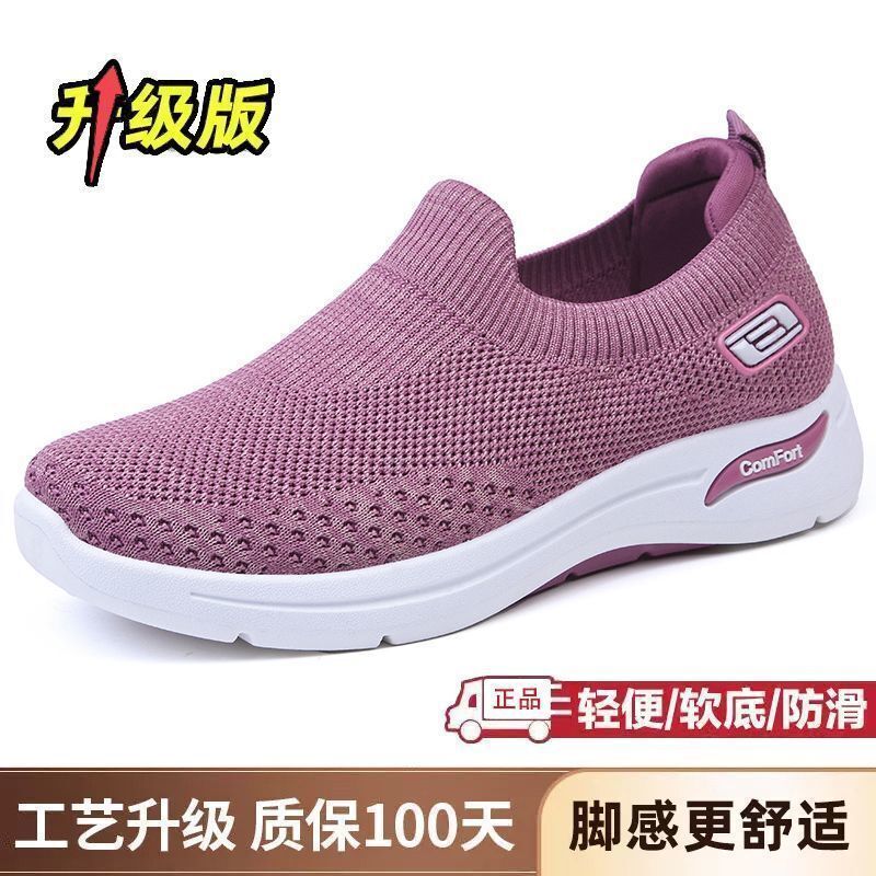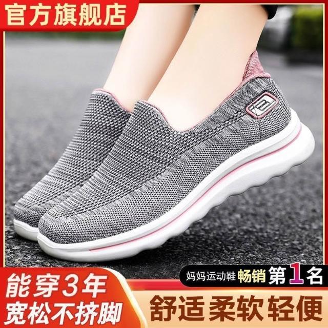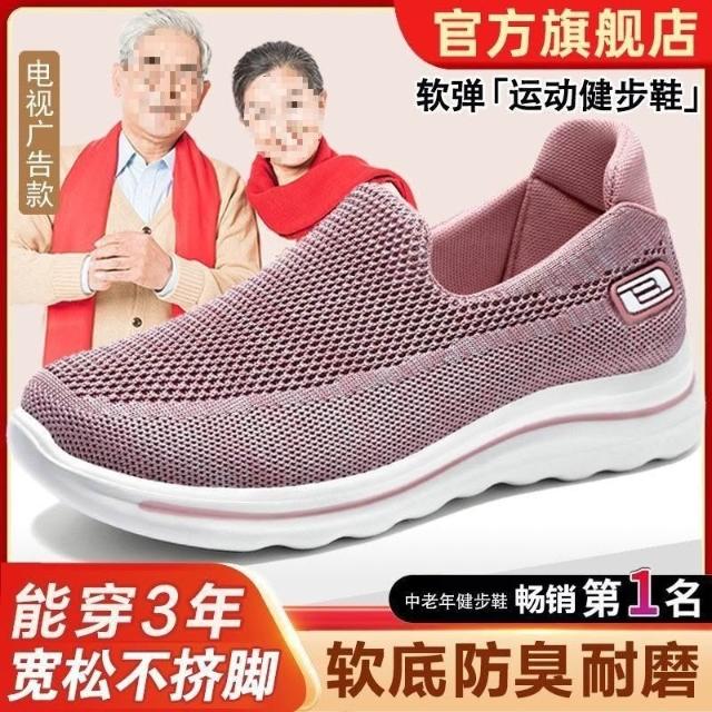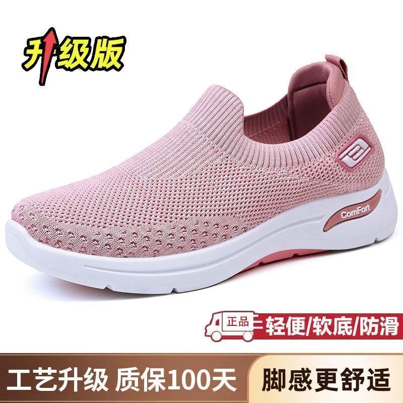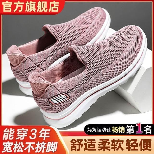 煦煦衣櫥 新款中老年媽媽鞋一腳蹬鞋女防滑軟底網面健步鞋