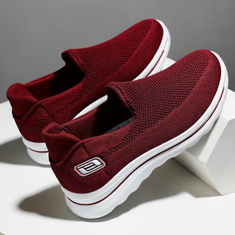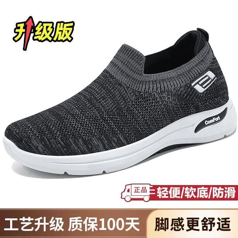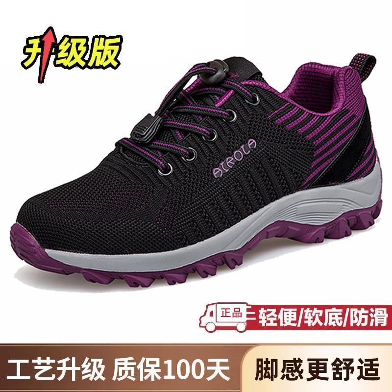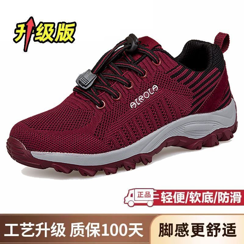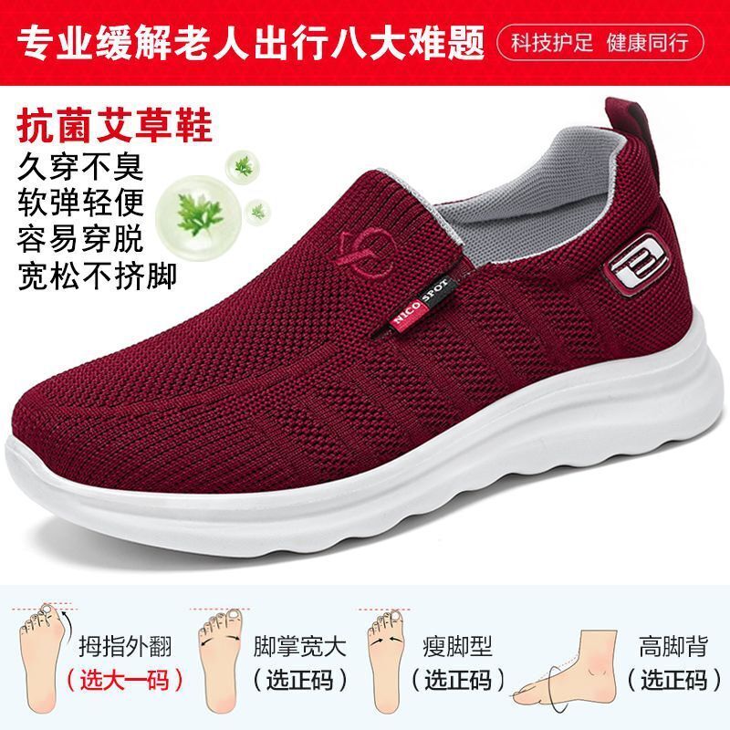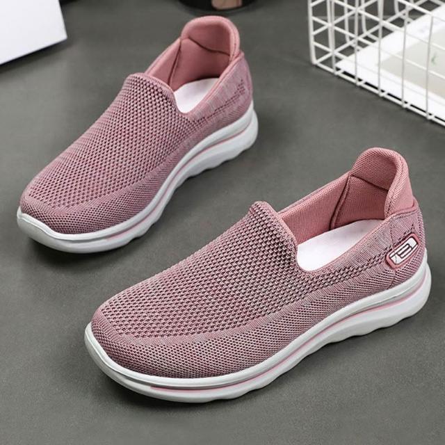 煦煦衣櫥 新款中老年媽媽鞋一腳蹬鞋女防滑軟底網面健步鞋
