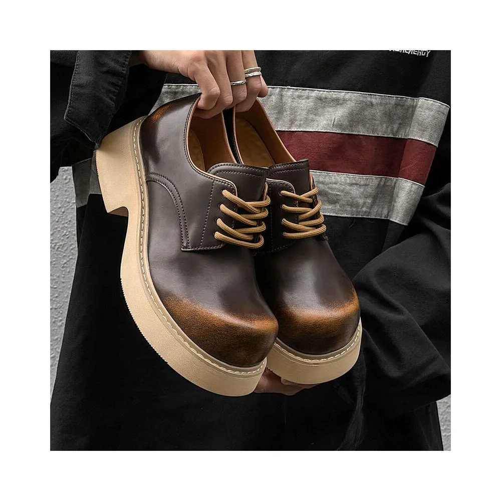 免稅 免運 皮鞋男大頭翹頭小眾設計厚底增高休閑德比鞋休閑潮鞋