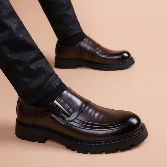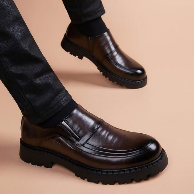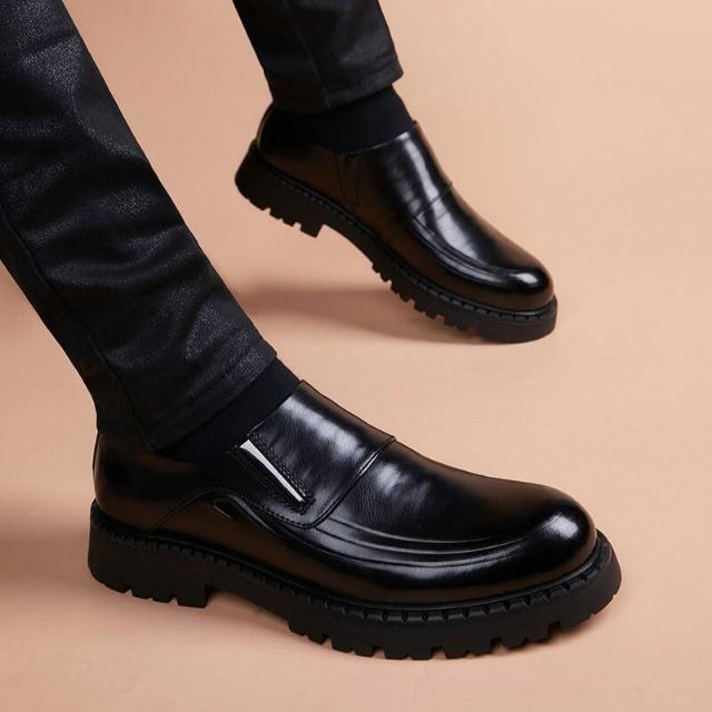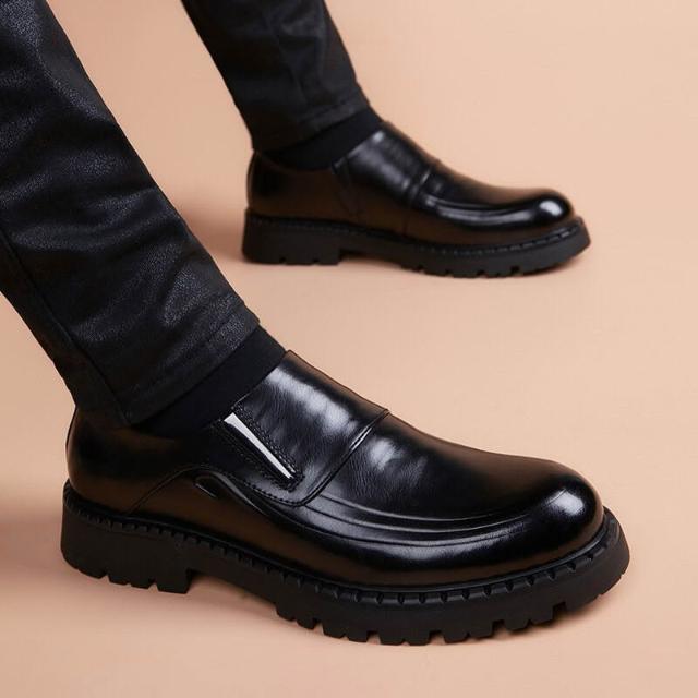 免稅 免運 時尚套腳皮鞋男新款商務休閑男士皮鞋青年一腳蹬皮鞋支持一件代發