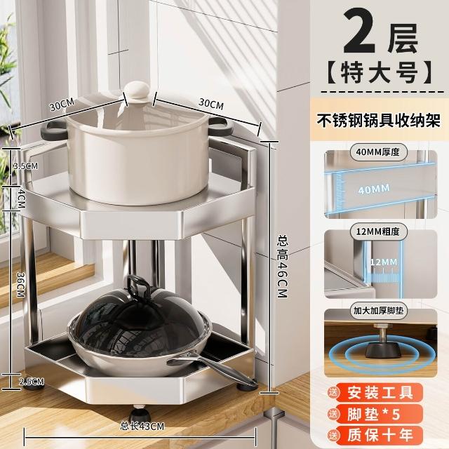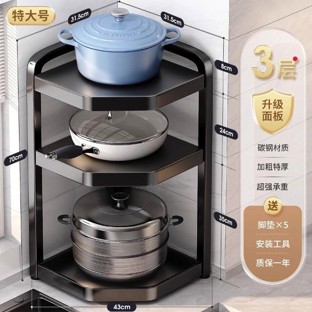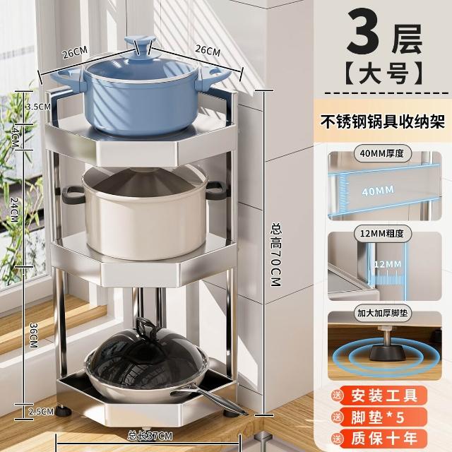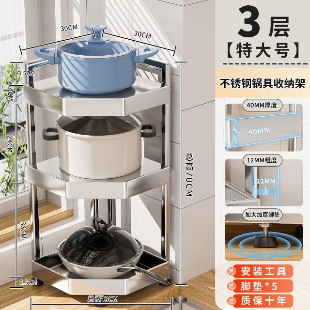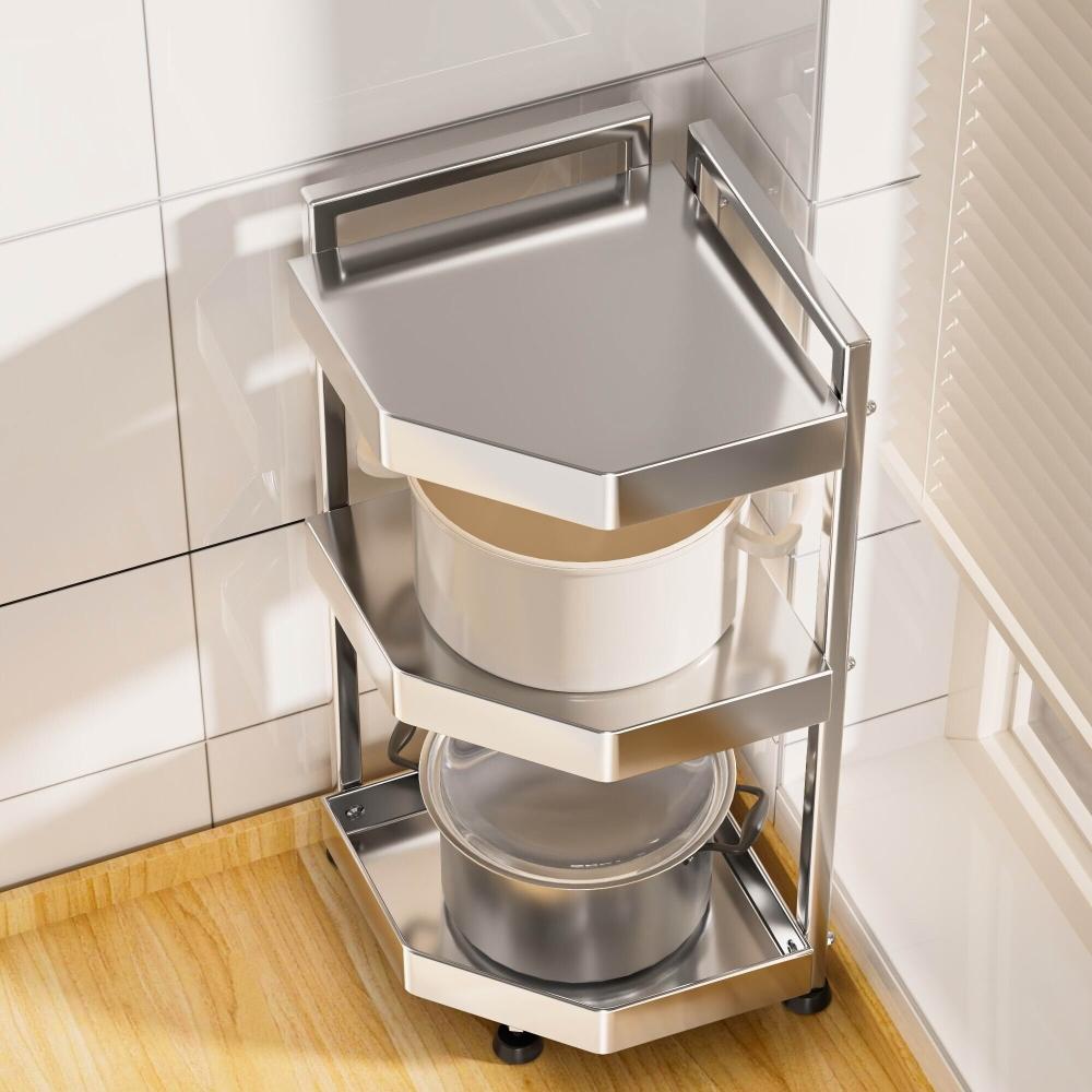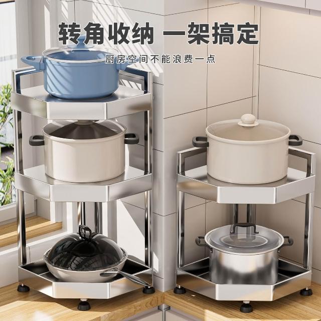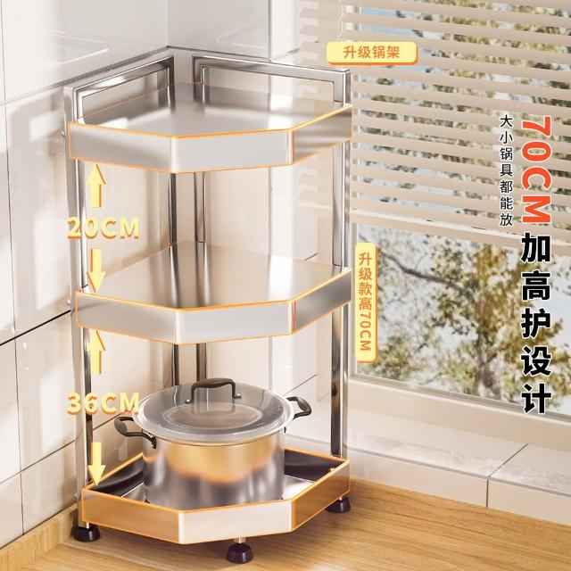 免稅 免運 廚房轉角置物架落地多層不銹鋼三角墻角放鍋架子家用鍋具收納鍋架