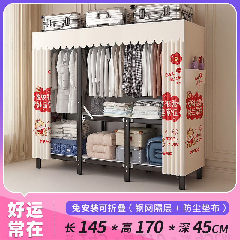 新品上架 免安裝簡易衣櫃鋼架接頭可折疊布衣櫃組裝出租房用布藝衣櫥