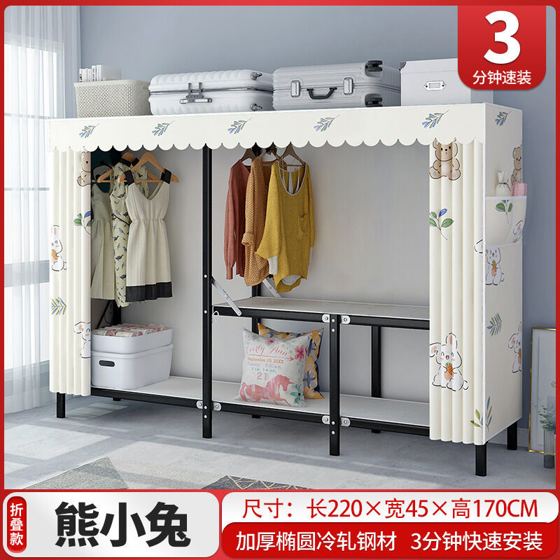 新品上架 免安裝簡易衣櫃鋼架接頭可折疊布衣櫃組裝出租房用布藝衣櫥
