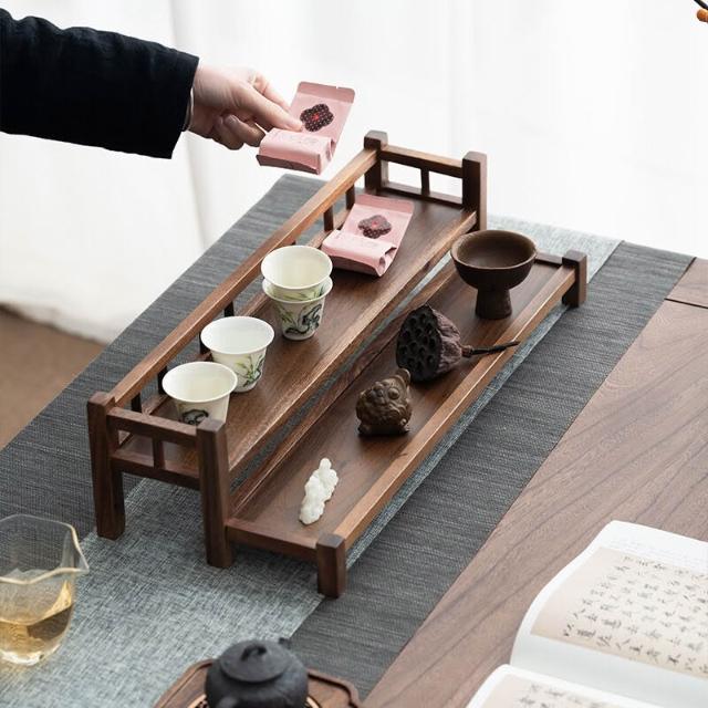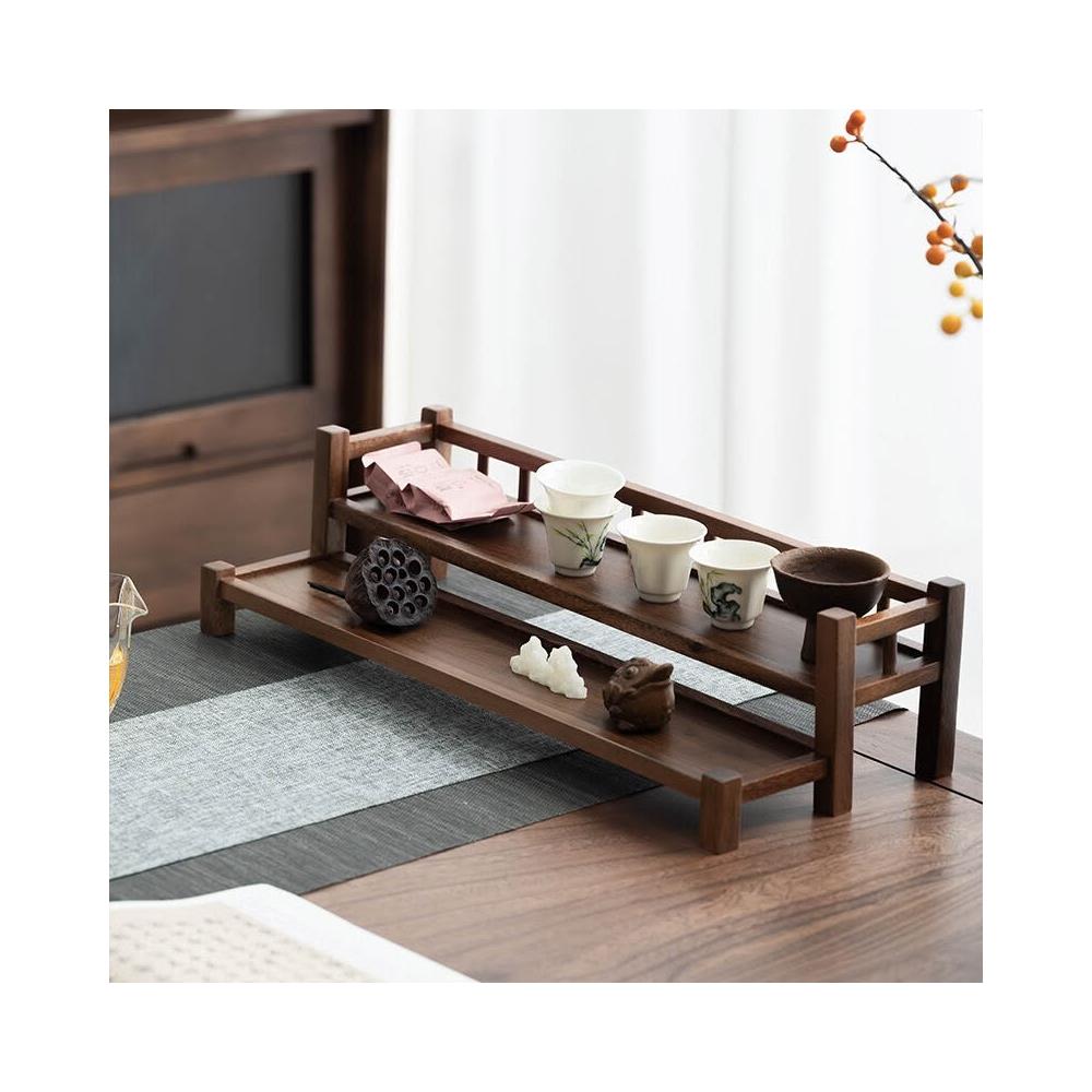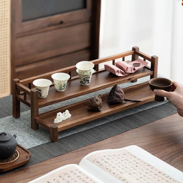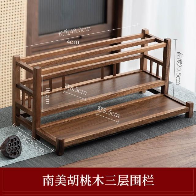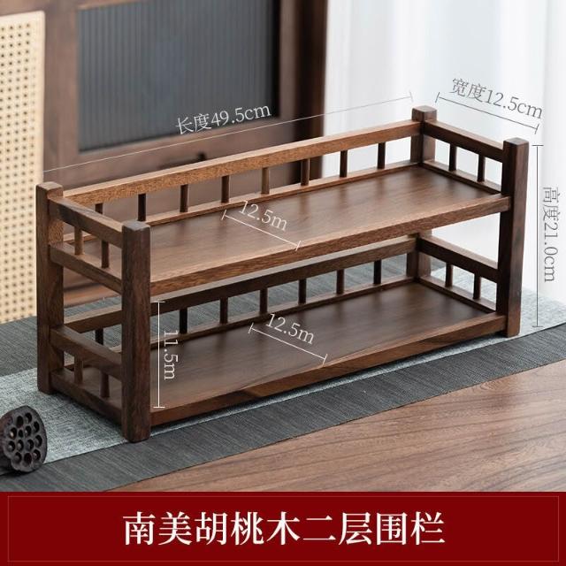 新品上架 南美胡桃木桌面收納架桌面博古架二層紫砂壺茶具收納架文房收納架