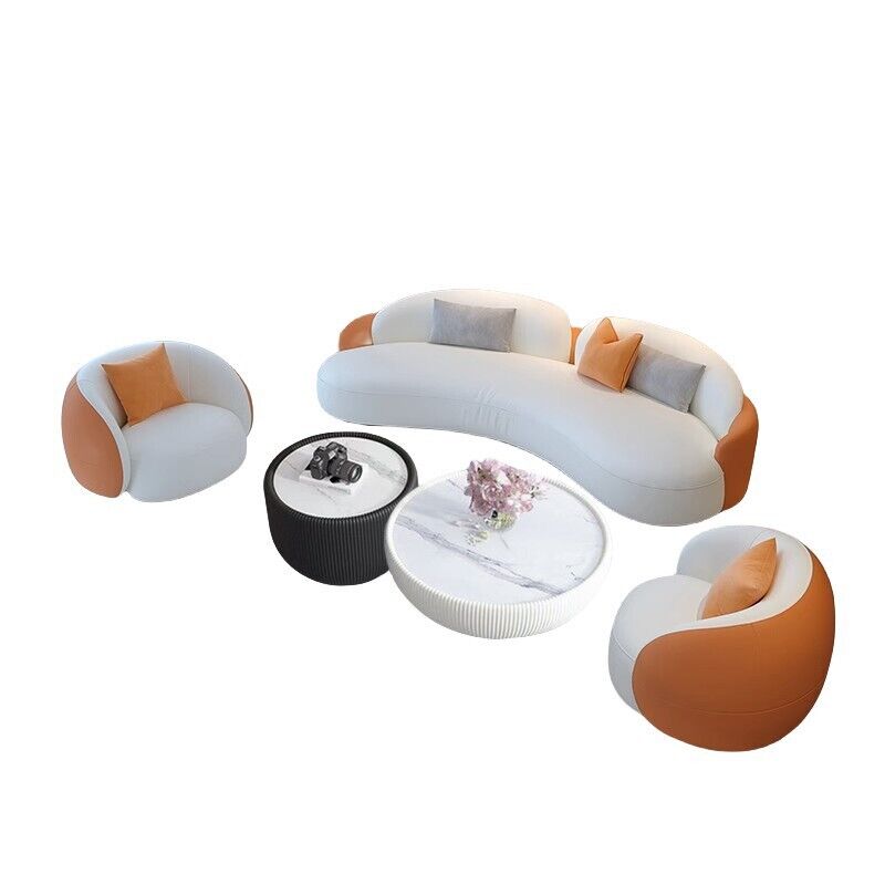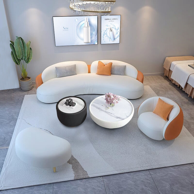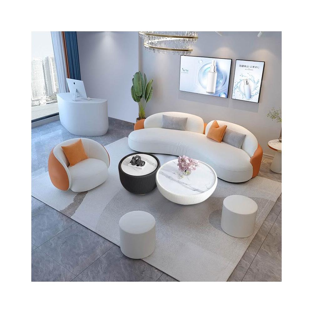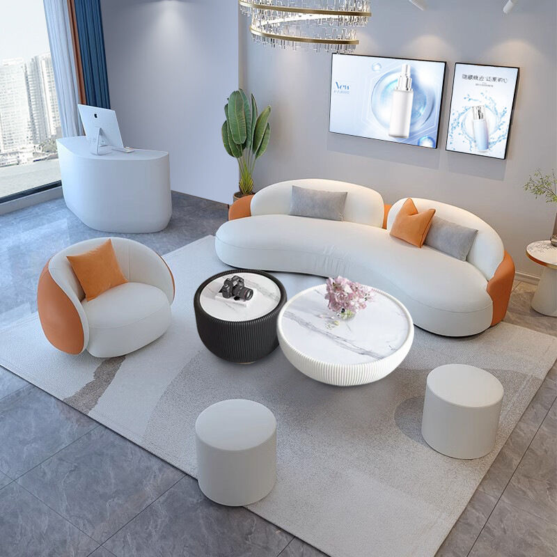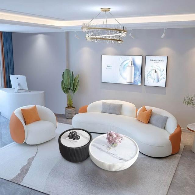 新品上架 現代簡約小戶型客廳沙發組合美容院休息區接待輕奢弧形實木輕奢風