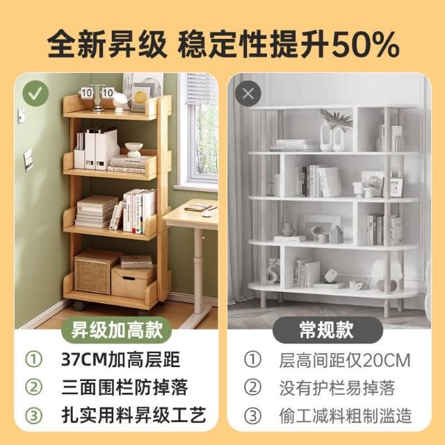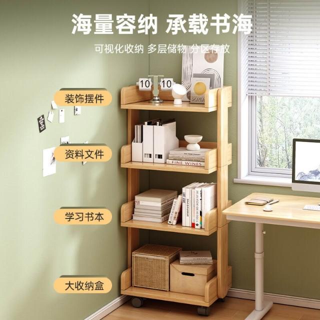 新品上架 實木書架落地置物架客廳靠墻簡易書櫃家用多層收納架可移動儲物架