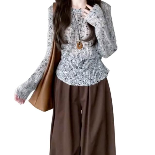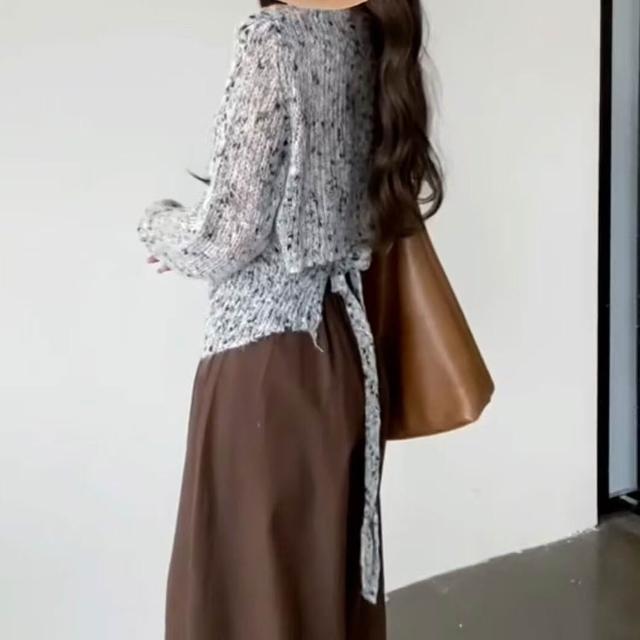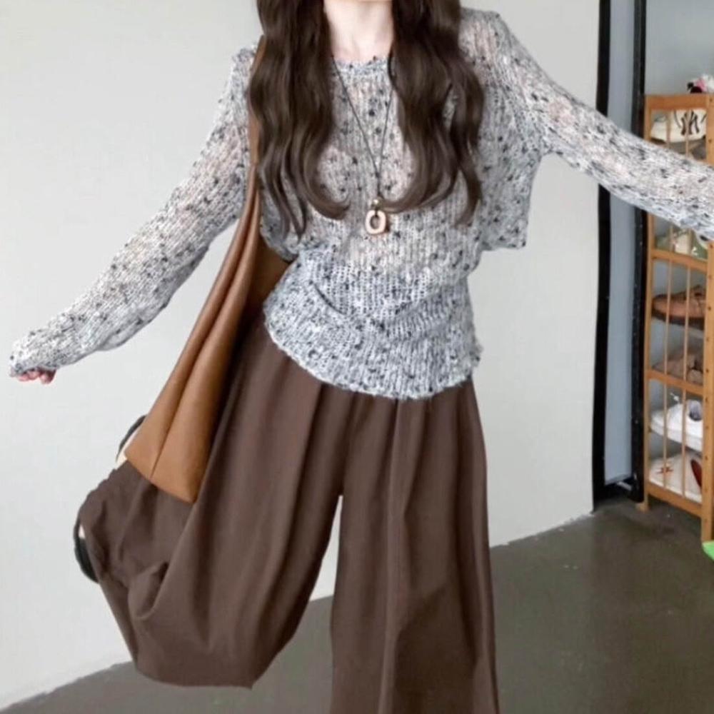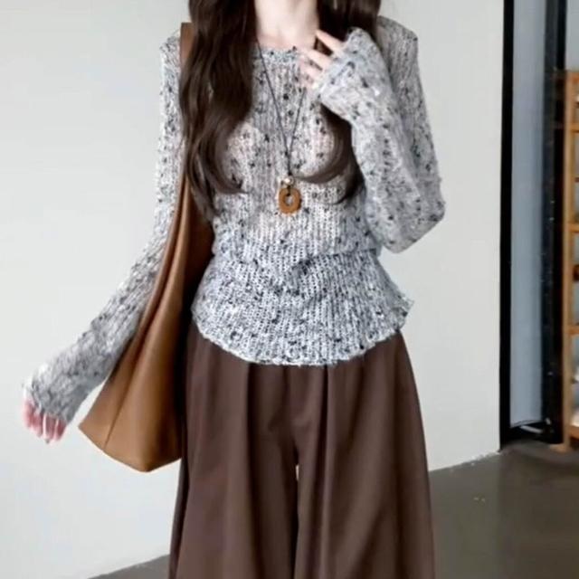 新品上架 韓系早秋氛圍感穿搭灰色針織毛衣女春秋2025新款薄款镂空罩衫上衣