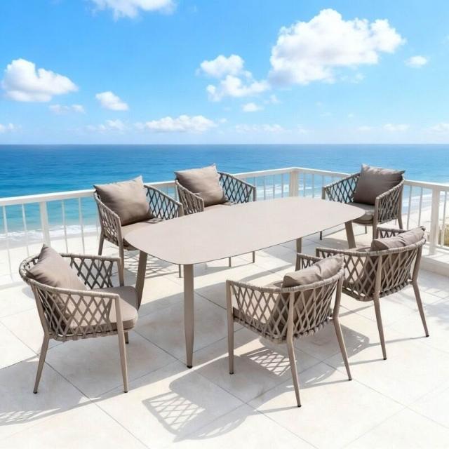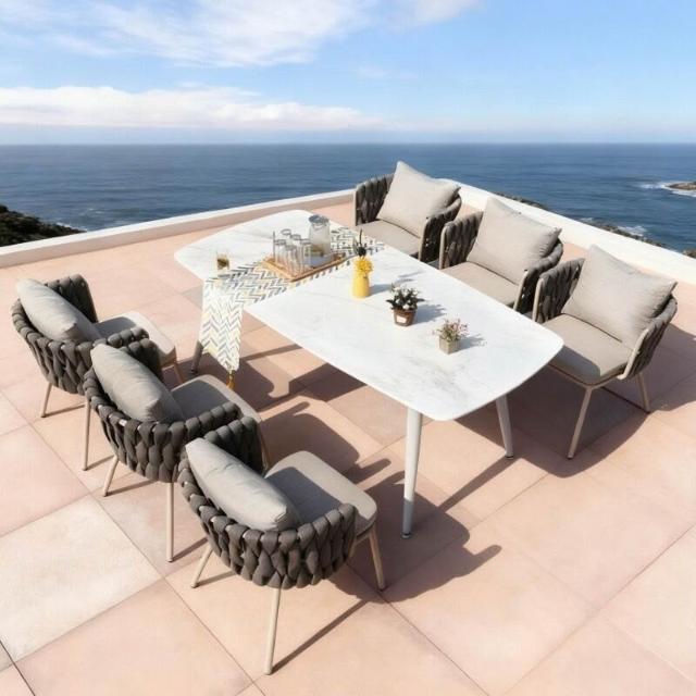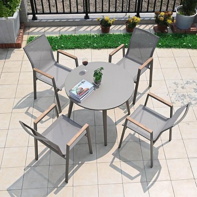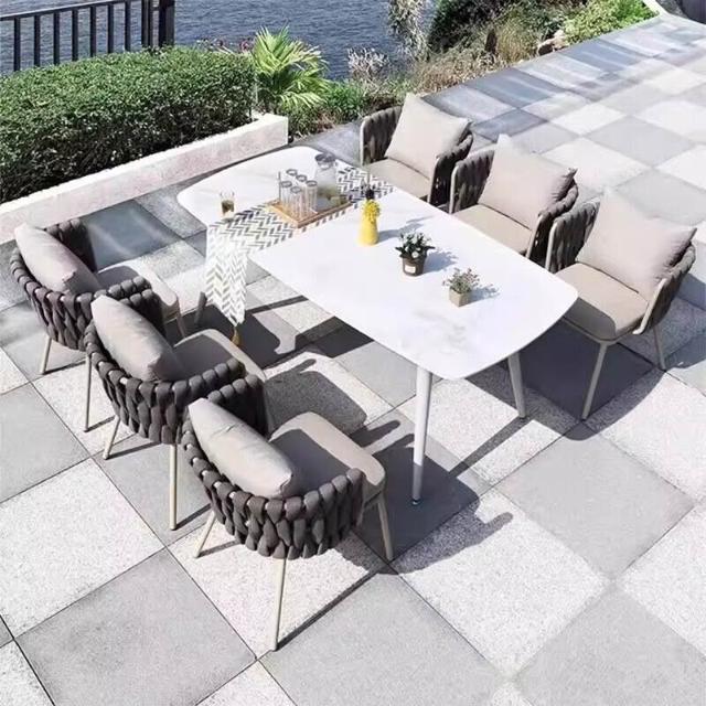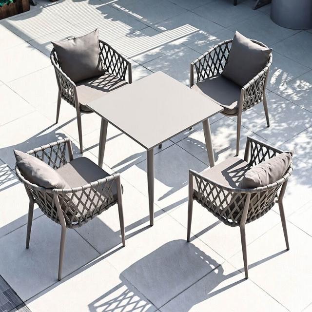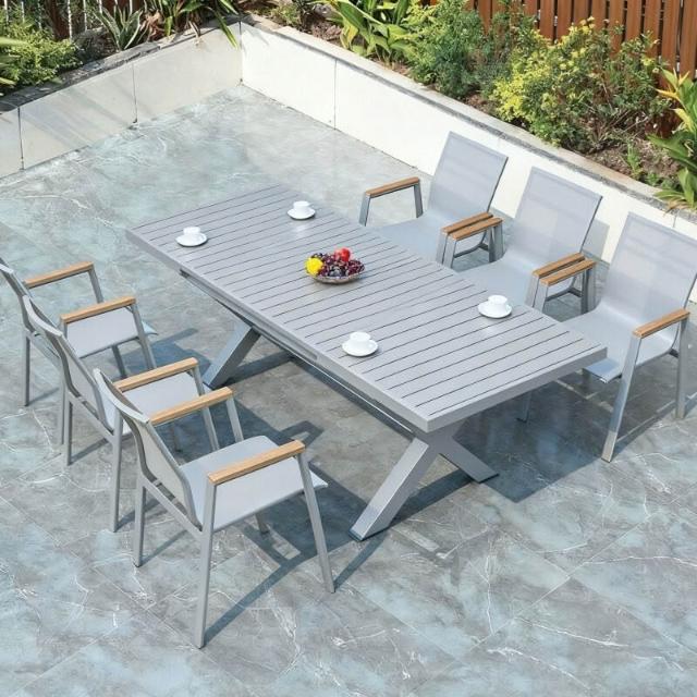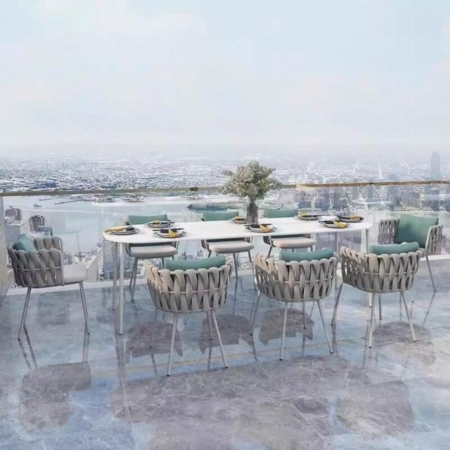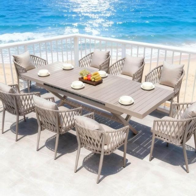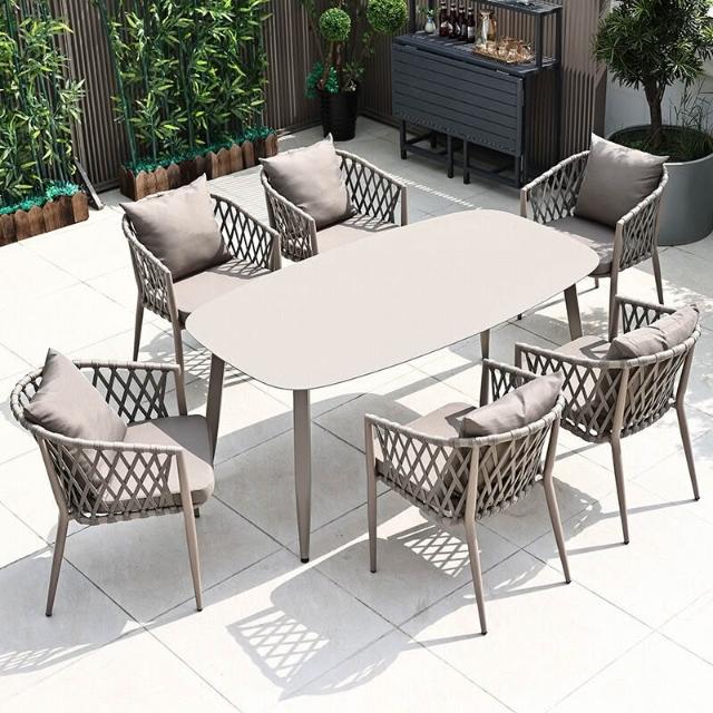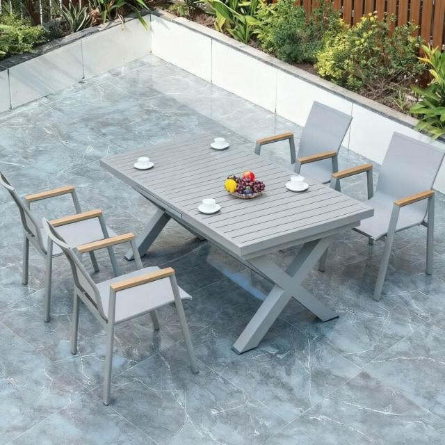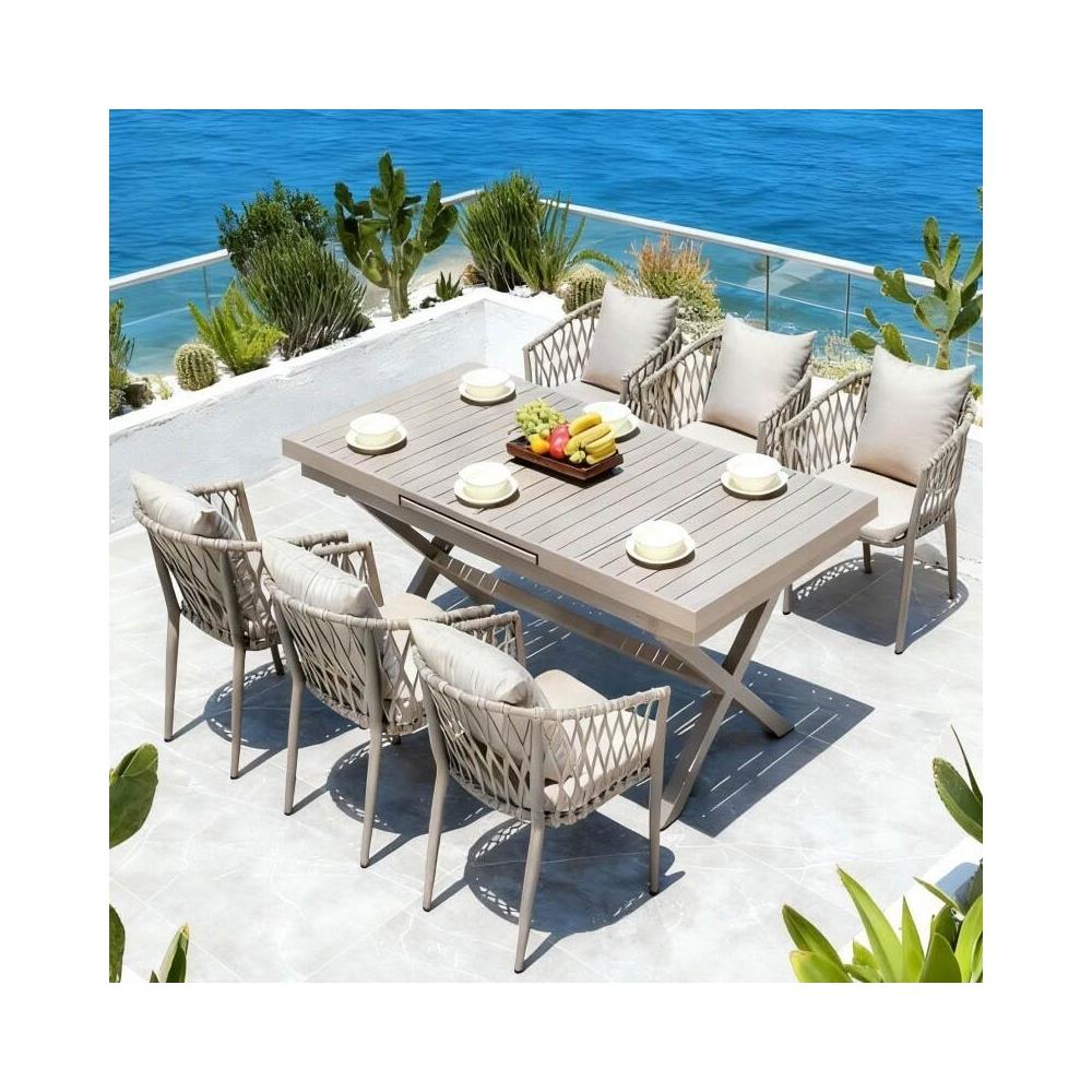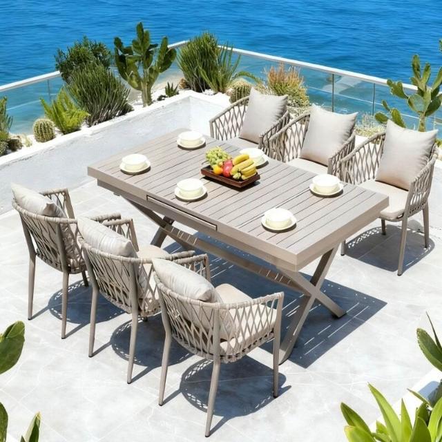 新品上架 戶外庭院藤編桌椅套裝全鋁合金花園室外露天伸縮餐桌餐椅組合