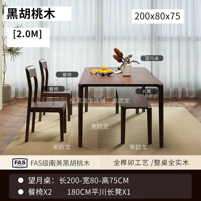 新品上架 黑胡桃木北歐實木餐桌椅組合家用長方形飯桌原木簡約書桌禅意茶桌