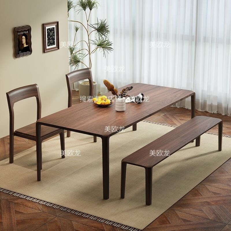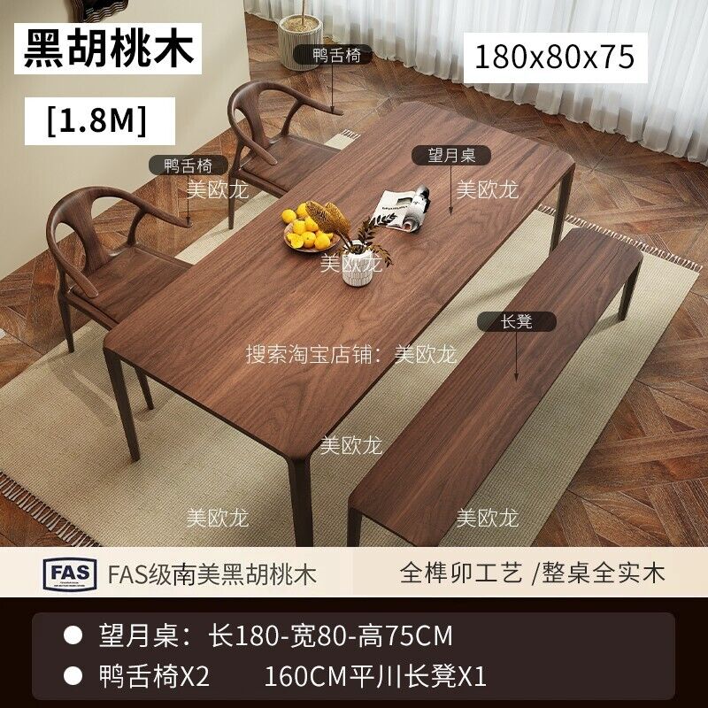 新品上架 黑胡桃木北歐實木餐桌椅組合家用長方形飯桌原木簡約書桌禅意茶桌