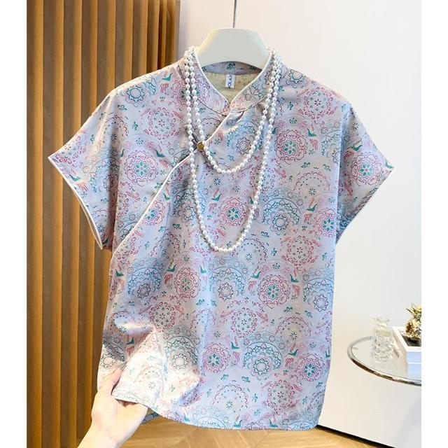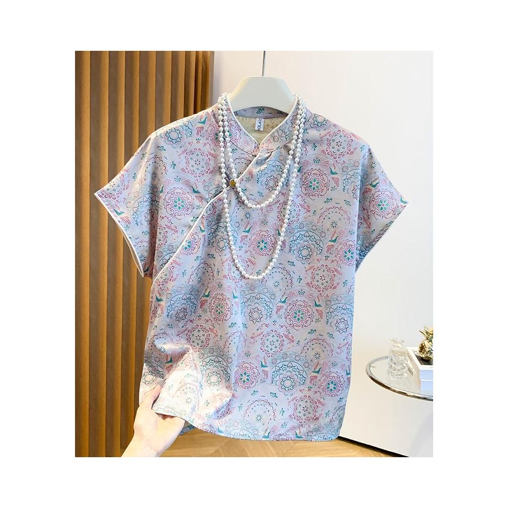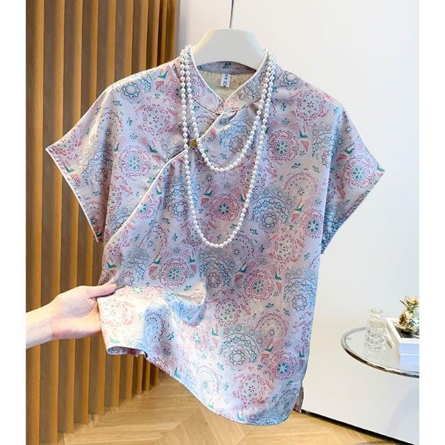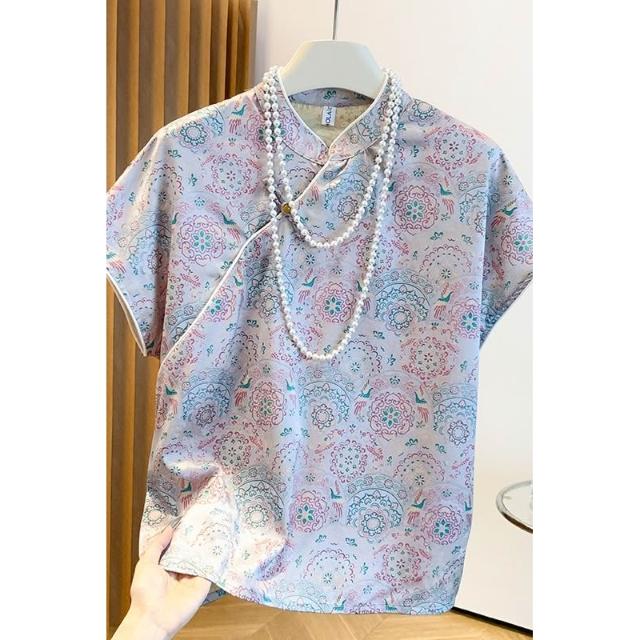春夏上新 實拍 新中式洋氣復古短袖斜襟襯衫女2025年國風提花盤扣上衣 煦煦衣櫥