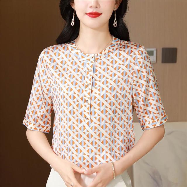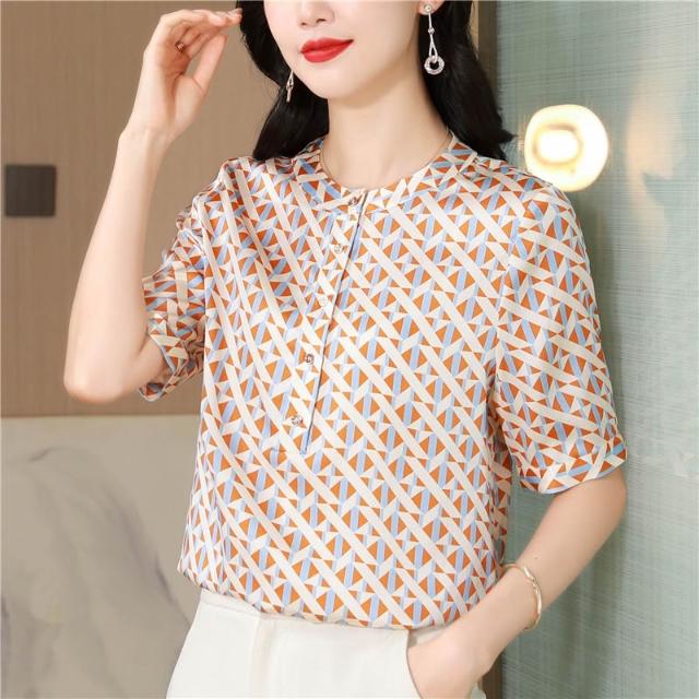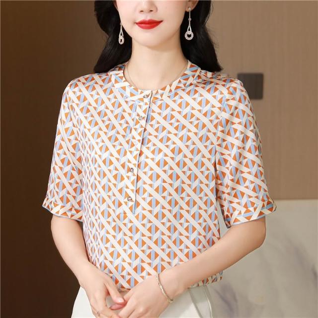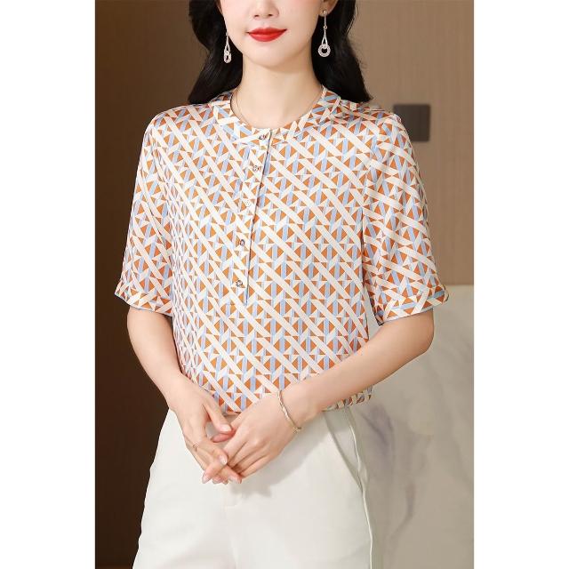 春夏上新 重磅真絲上衣女短袖2025年新款時尚桑蠶絲大簰襯衫顯瘦薄款T恤夏 煦煦衣櫥