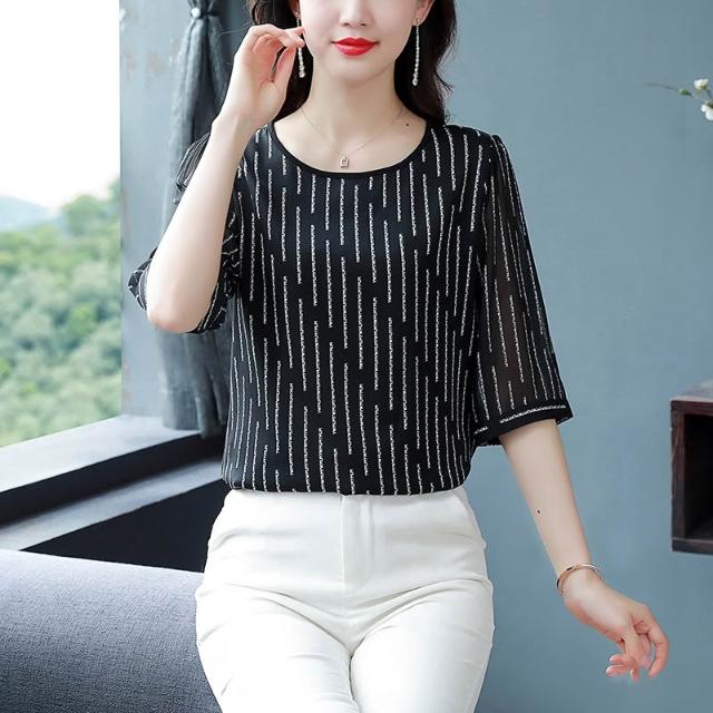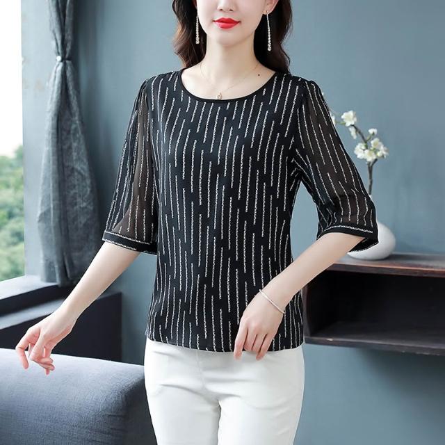 春夏上新 時尚印花重磅真絲襯衫女短袖春夏新款緞面大碼桑蠶絲上衣洋氣 煦煦衣櫥