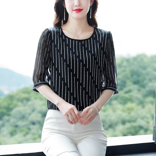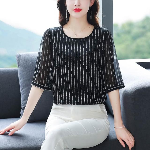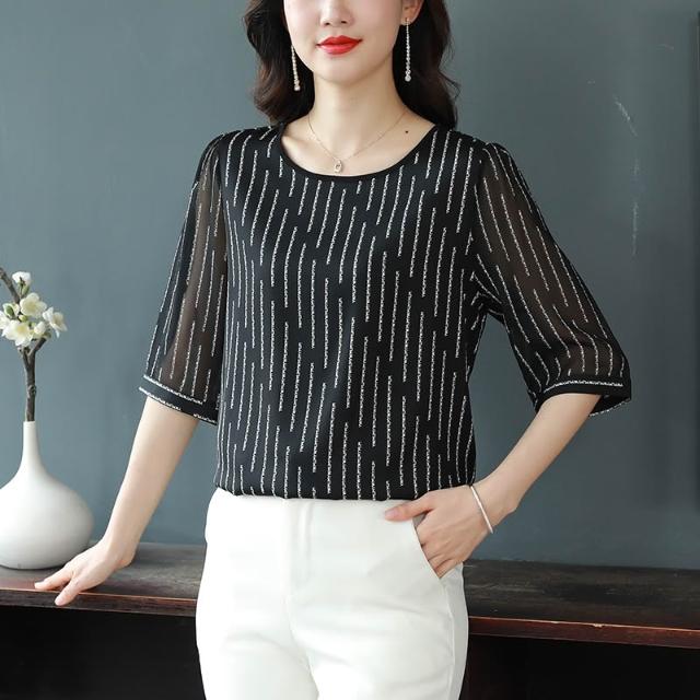 春夏上新 時尚印花重磅真絲襯衫女短袖春夏新款緞面大碼桑蠶絲上衣洋氣 煦煦衣櫥