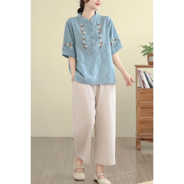 女装 套装 女两件套 實拍媽媽夏裝棉麻套裝夏季新款洋氣中老年T恤女短袖薄休閑兩件套 煦煦衣橱