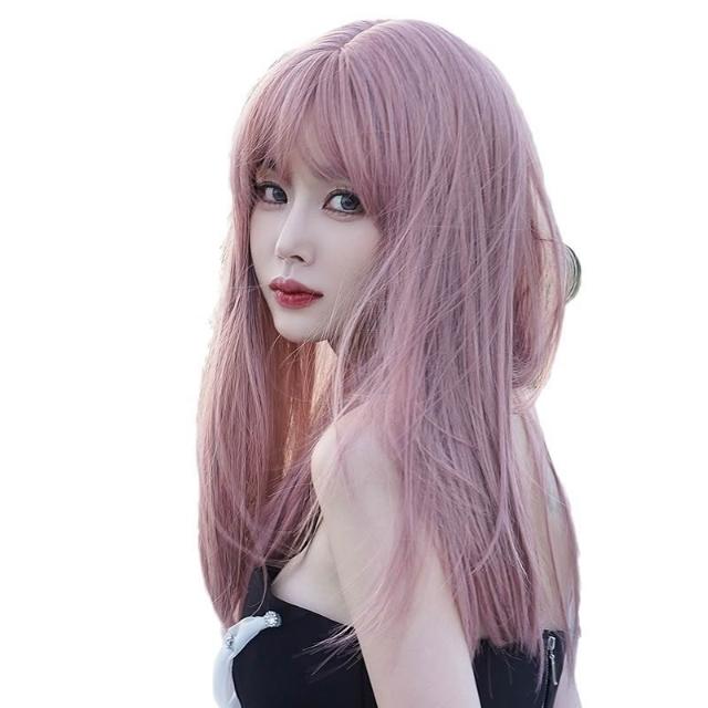 假髮 接髮 髮塊 假發女長發全頭套式網紅長直發空氣劉海粉色假發套時尚假發批發 煦煦衣櫥